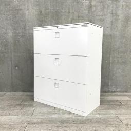 【使いやすさで選ぶならコレ!大容量の三段キャビネット】■オカムラ(Okamura)製 レクトラインシリーズ(Rectline) 3段ラテラル書庫 ローキャビネット ■天板付き ■シリンダー錠 ■ホワイト
