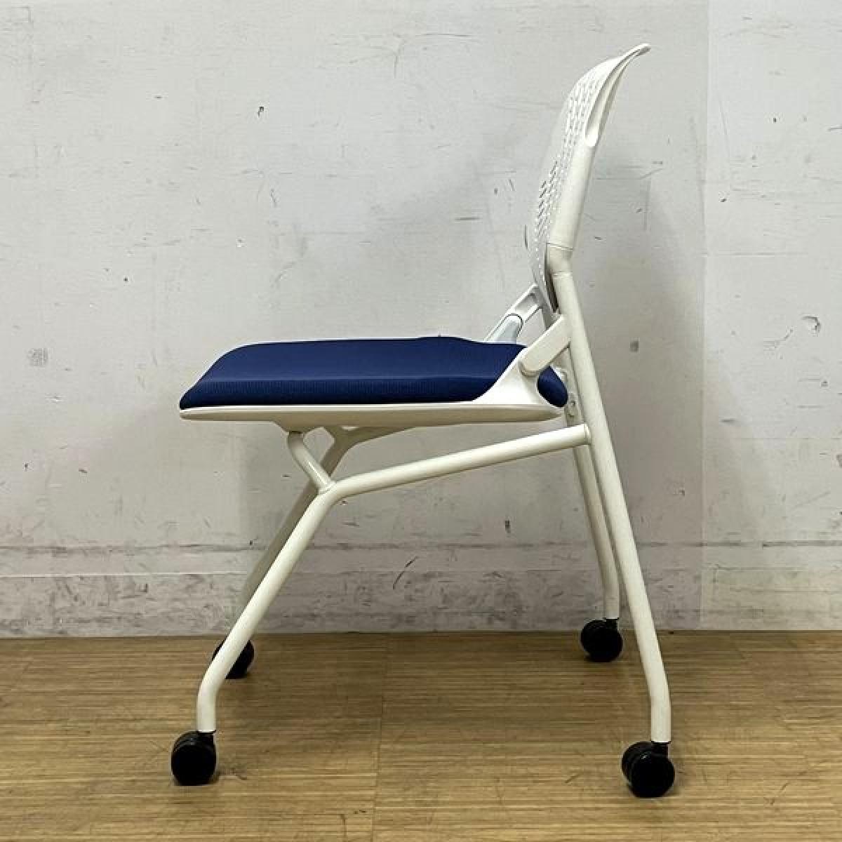 オカムラ ルナ ネスティングチェア 背パッドなし ミディアムブルー×ホワイトフレーム 会議用・打ち合わせ用に最適のチェア【AD】在庫がある店舗一覧