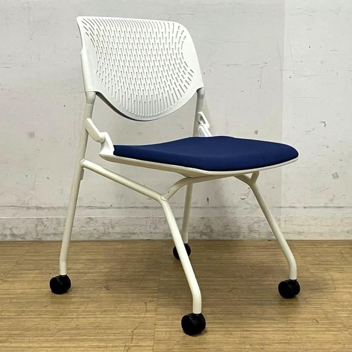 【使わない時は重ねて収納!さまざまな場面で活躍するミーティングチェア!】■オカムラ(okamura) ルナ(RUNA)チェア ネスティングチェア ミーティングチェア ■背面ヌードタイプ ■座面:ブルー × 背面:ホワイト オフィスバスターズ心斎橋店 ■弊社使用欄【A01023670】【T12】