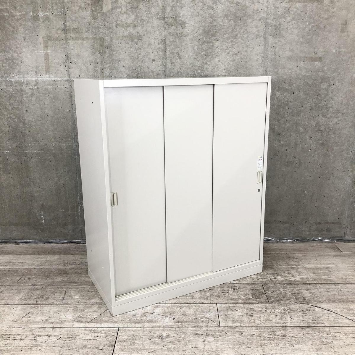 【お問い合わせの多い引違い書庫が入荷!スライド引き戸だから開閉スペースに困りません!】■オカムラ(okamura)製 レクトラインシリーズ 3枚引き戸タイプ 引違い書庫 ■シリンダー錠 ■ニューグレー