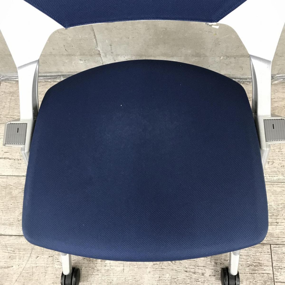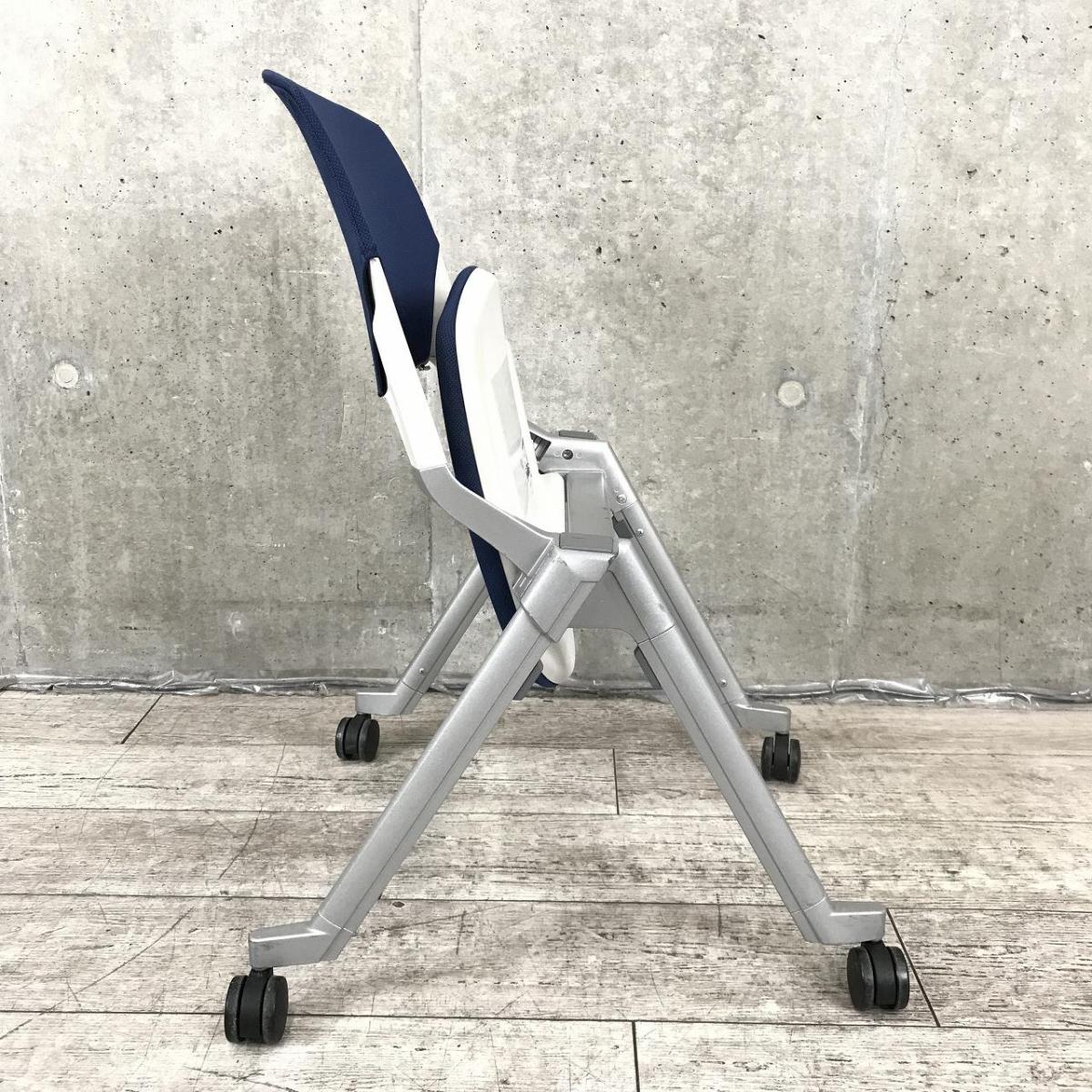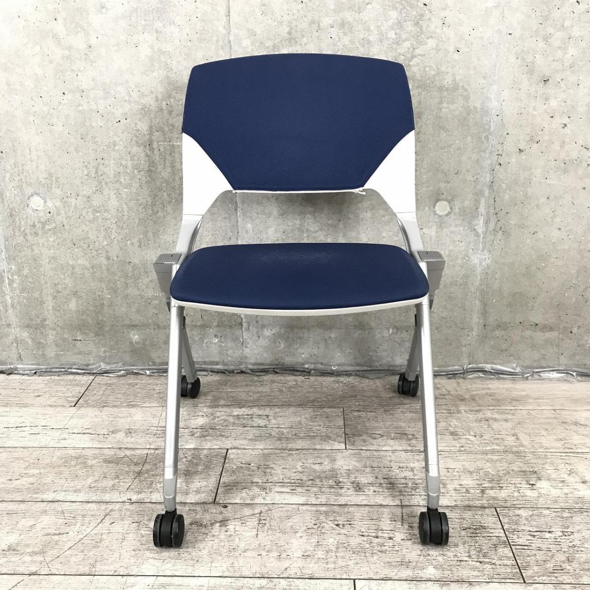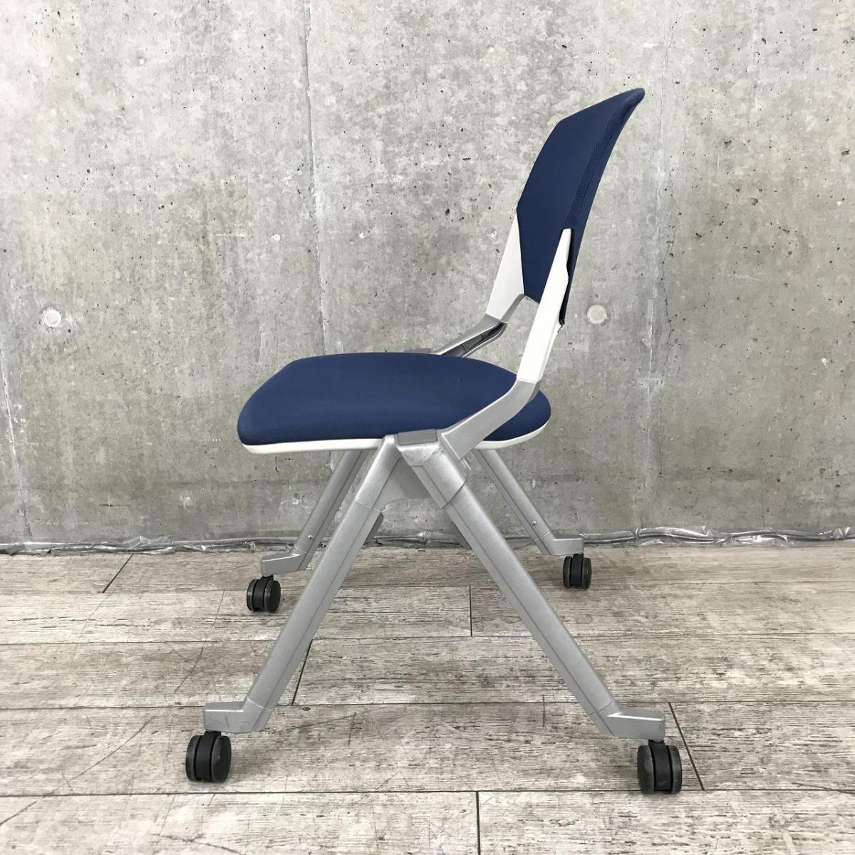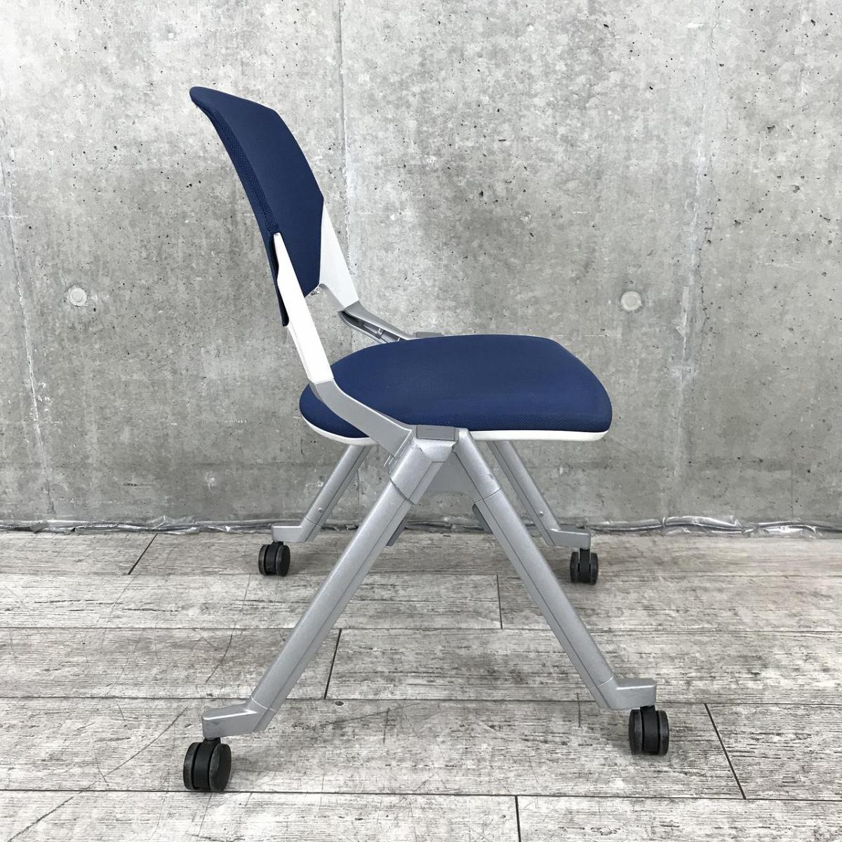 【平行収納、重ねての収納どちらも可能な珍しい仕様のミーティングチェア!】■ウチダ(UCHIDA)製 FM-320シリーズ スタッキングチェア ネスティングチェア 肘無し キャスター付 ■ダークブルー- 神戸・三宮店
