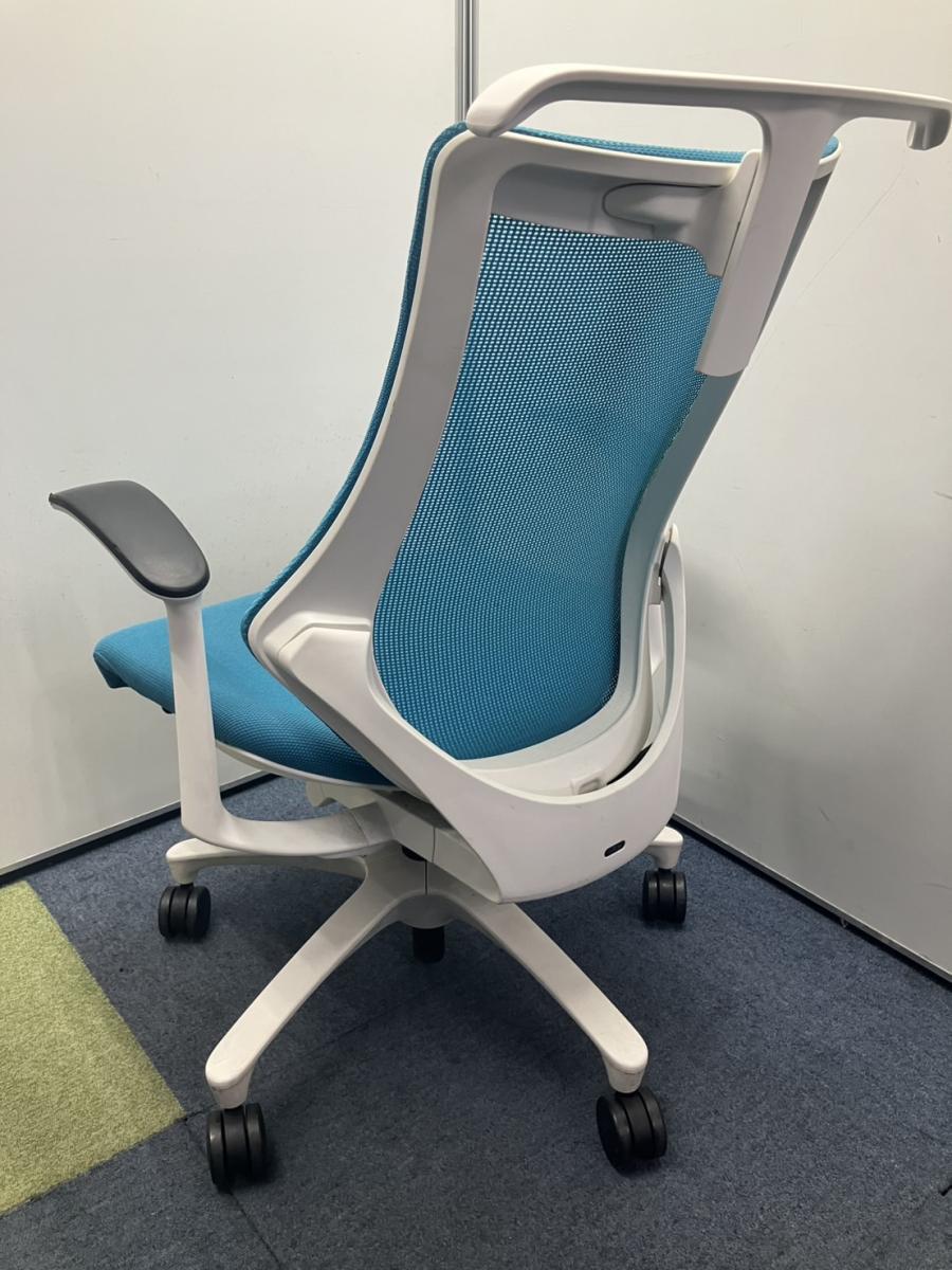 姿勢の変化にフレキシブルに対応!スタイリッシュで座り心地も抜群な大人気の高機能チェアが入荷! ■イトーキ(ITOKI) エフチェア(f)/ストロングブルー×ホワイトフレームメッシュ 背面メッシュ コートハンガー付・可動肘付 旧タイプ