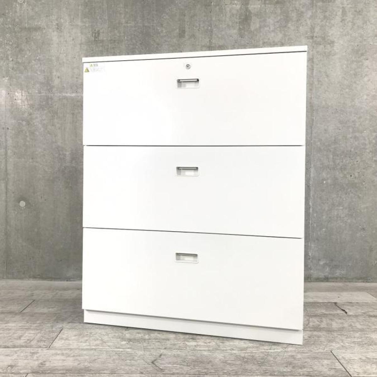 【A4ファイルも沢山収納可能!ホワイトカラーの人気シリーズ3段ラテラル書庫!】/オススメ(おすすめ) /人気商品【弊社使用欄:A01013834】3段ラテラル書庫/ローキャビネット/天板付き/ホワイト/シリンダー錠/ITOKI/THIN LINE■イトーキ/シンライン※取っ手部分日焼あり