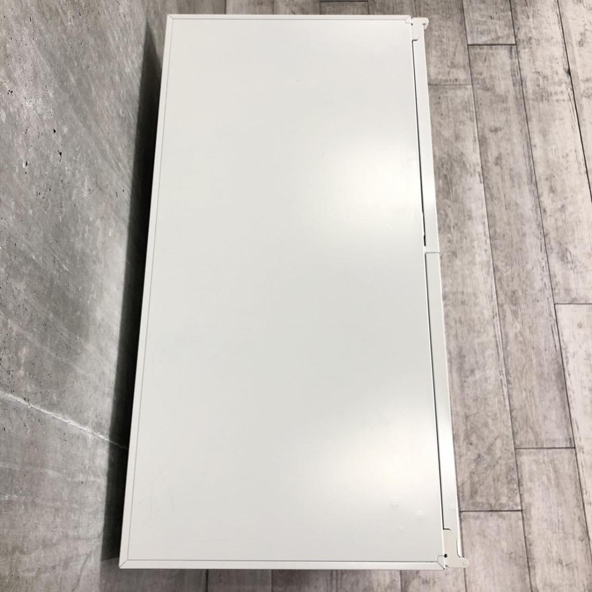 【オシャレなナチュラル天板付き!人気の観音開きタイプ・取っ手が大きく使い勝手のよい定番キャビネット!】■ウチダ(UCHIDA)製 HSシリーズ 両開きローキャビネット ■ホワイト ■木目調天板付 ■シリンダー錠