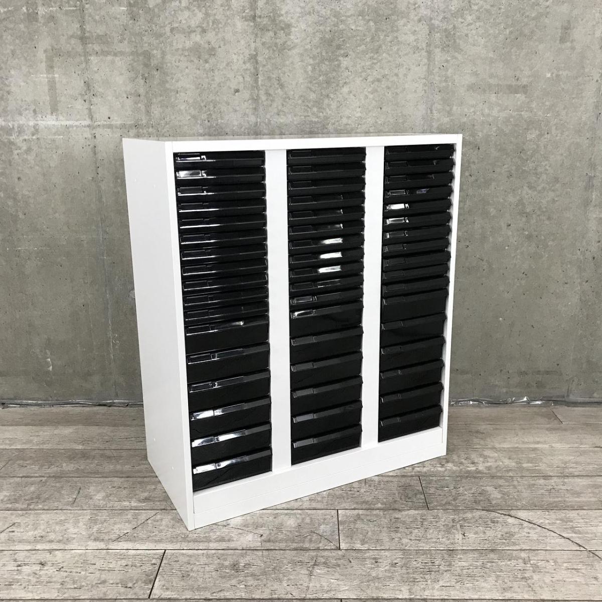 【書類・備品整理の必需品!】【珍しいクリトレが入荷!3列×浅型11段+深型6段】■ウチダ(UCHIDA)製 BEストレージシリーズ クリスタルトレー ローキャビネット ■3列×浅型11段+深型6段 ■色:ホワイト/トレイ:ブラック