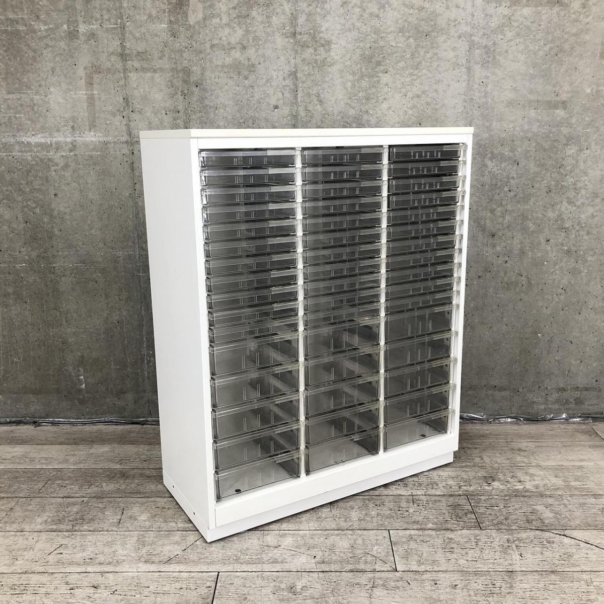 【書類・備品整理の必需品!】【珍しいクリトレが入荷!3列×浅型11段+深型5段】■イトーキ(ITOKI)製 シンラインシリーズ クリスタルトレー ローキャビネット ■3列×浅型11段+深型5段 ■天板・ベース付 ■色:ホワイト