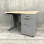 幅1000㎜のコンパクトタイプ!使い勝手の良い3段収納の片袖机! ■イトーキ/CZNシリーズ/天板:木目調ナチュラル 本体:ホワイトグレー( グレー) W1000㎜ シリンダー錠