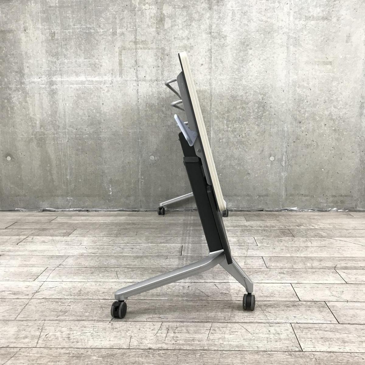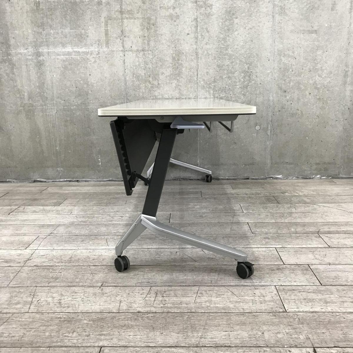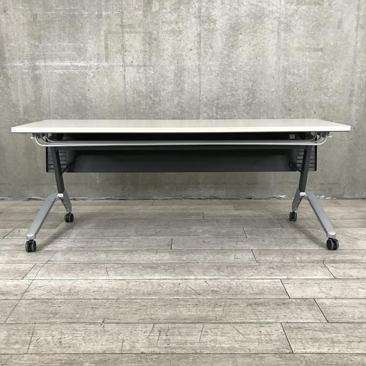 【会議・研修室などに・使わないときは畳んで省スペース!】■コクヨ(KOKUYO)製 KT-620シリーズ サイドスタックテーブル フラップテーブル ■幕板付き W1800×D600㎜ ■グレー 【2~3名での使用に最適】- 名古屋本店