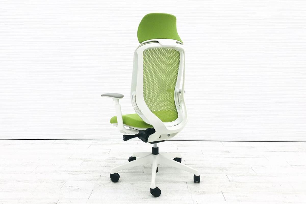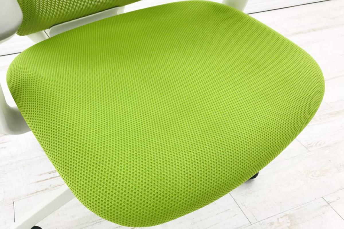 【ワーカーを支える機能を多数持つ人気チェア!優しい座り込みで姿勢も安定!】■オカムラ製 シルフィー 肘付ハイバックチェア 背面メッシュ ■可動肘 ■座面:ライムグリーン 脚:ホワイト オフィスバスターズ 東大阪店 2脚限定!