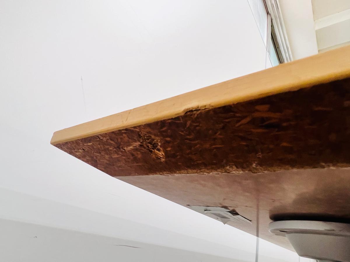 - あり黄ばみ・変色が広い範囲にうっすらある、または濃い黄ばみ・変色が一部ある。(例、天板、幕板、棚板、サイド部分、脚部等にある。)