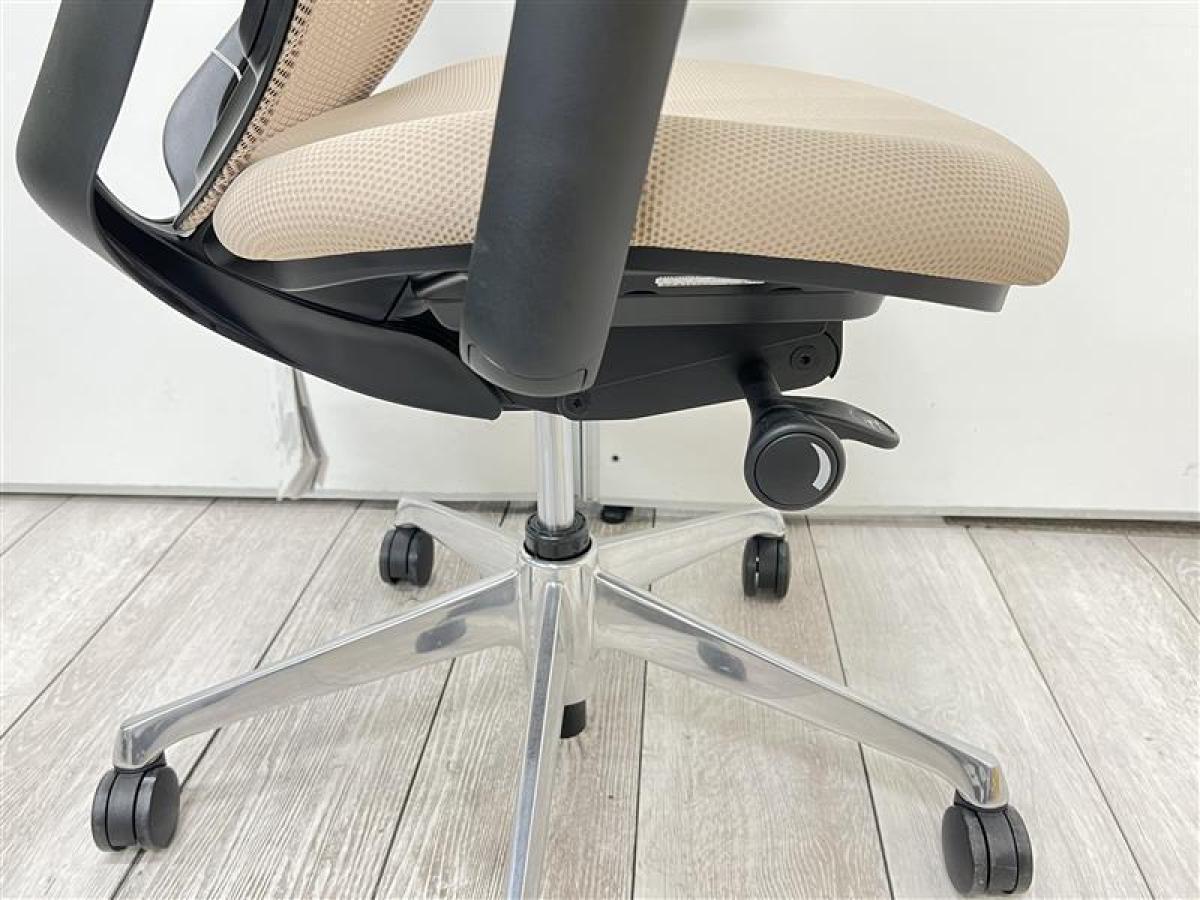 ☆人気のヘッドレスト付!【背のカーブを変えられる!新感覚のオフィスシーティング!】■オカムラ シルフィーチェア 可動肘付 ベージュカラー エクストラハイバック ポリッシュ脚【Okamrua Sylphy】【ABW】【IB】- 茨城南店