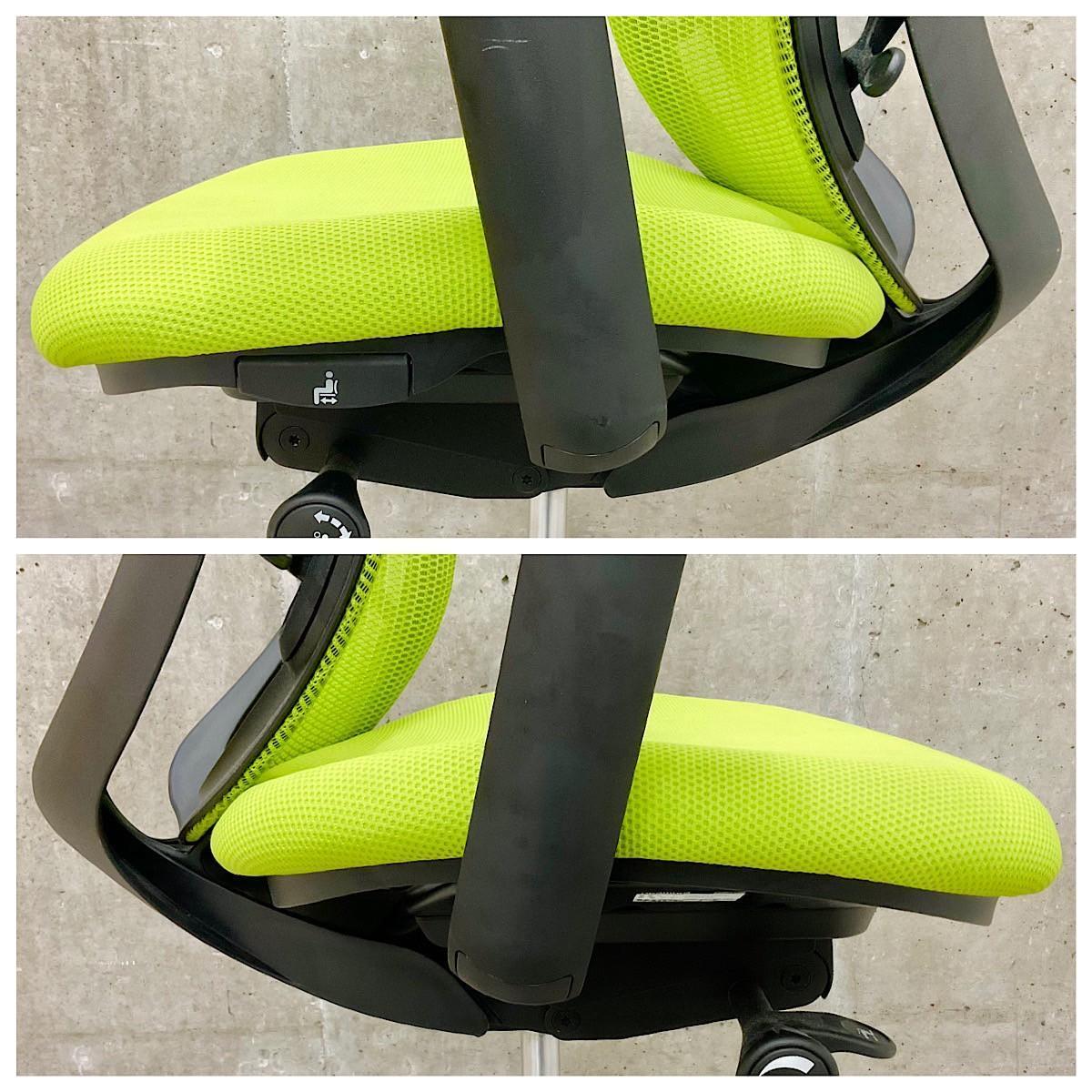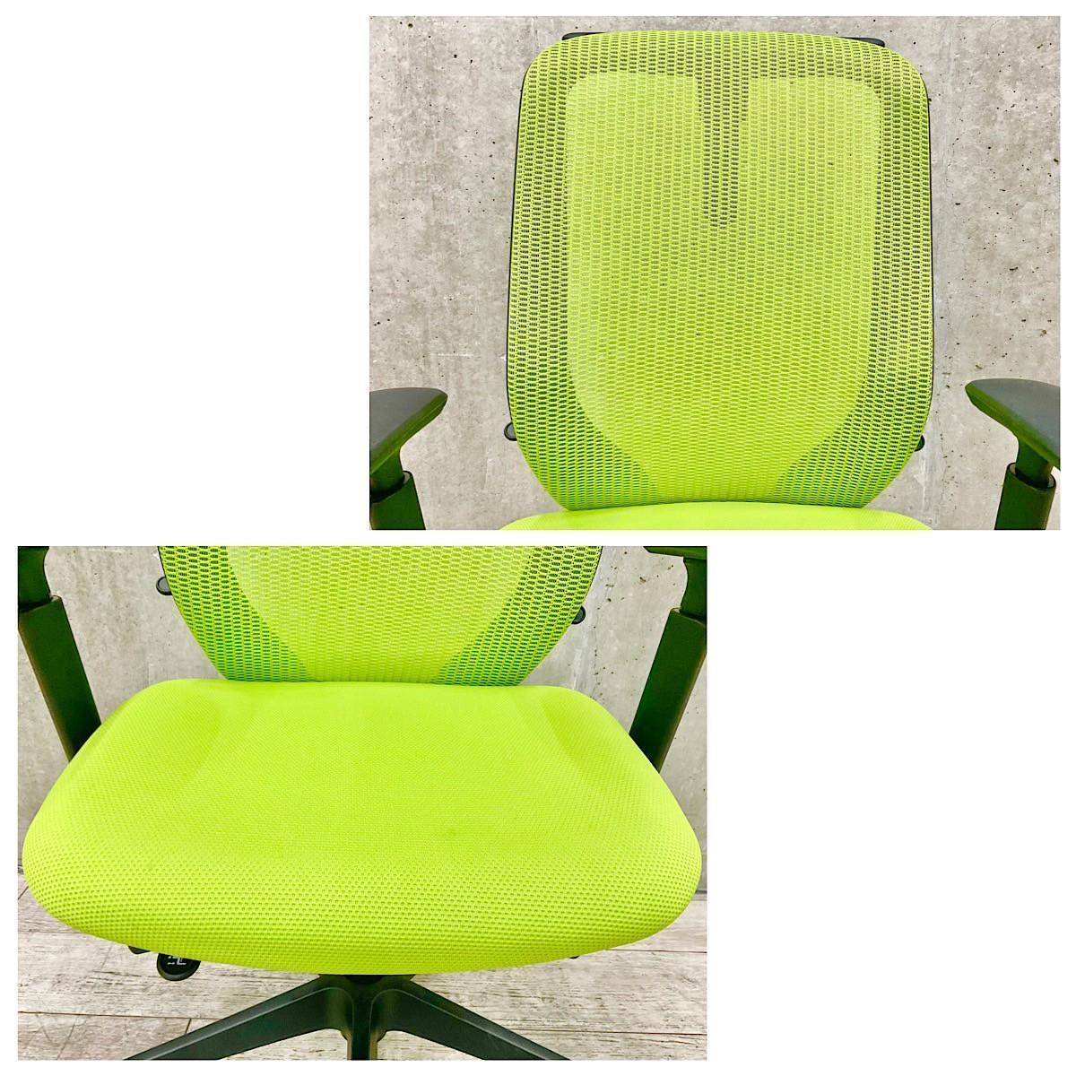【前傾チルト機能付き!オカムラ製品で最も人気を集める高機能メッシュチェア!】■オカムラ(okamura)製 シルフィ(Sylphy)チェア ハイバック 肘付き ■可動肘 ■ライムグリーン × ホワイトシェル【状態良好品!】