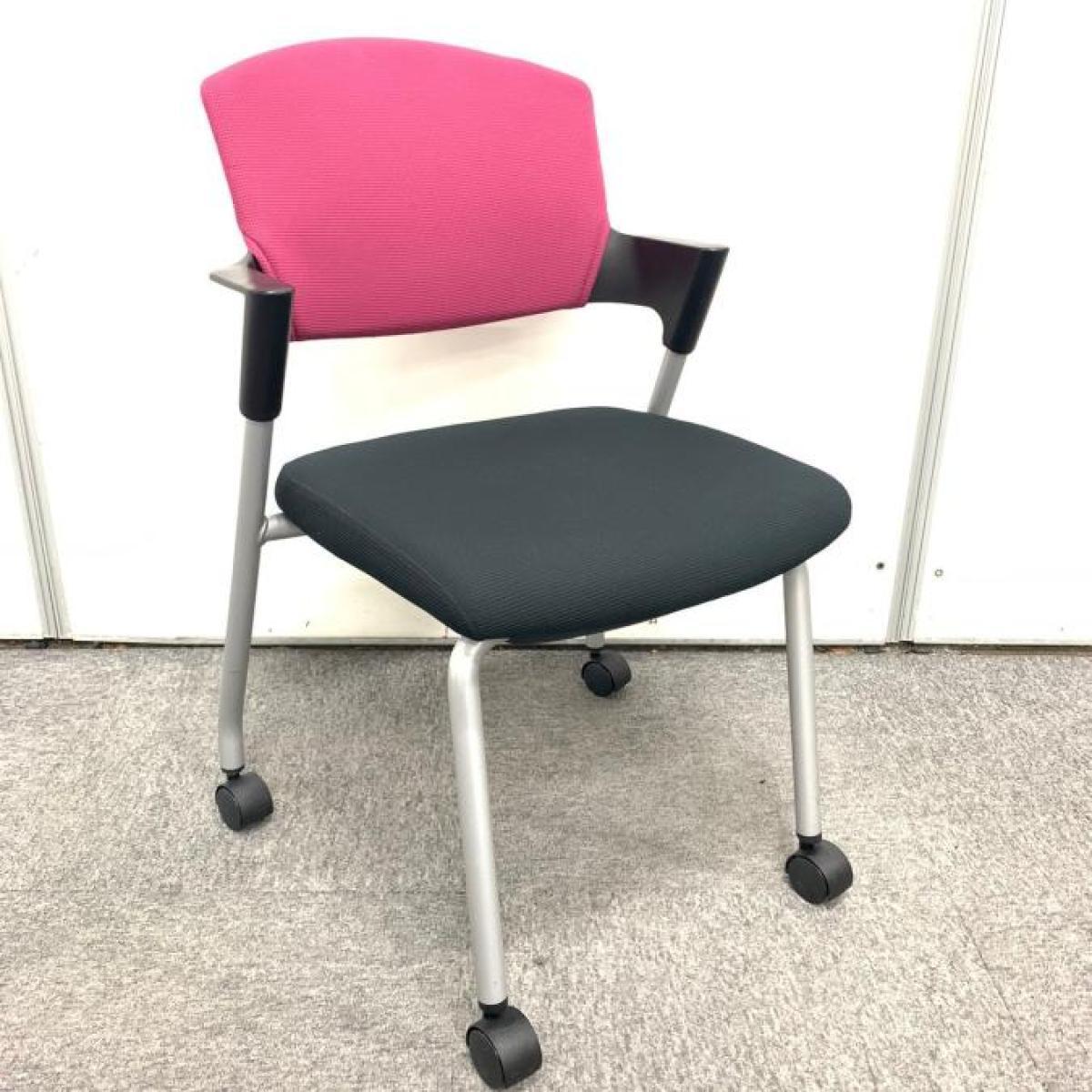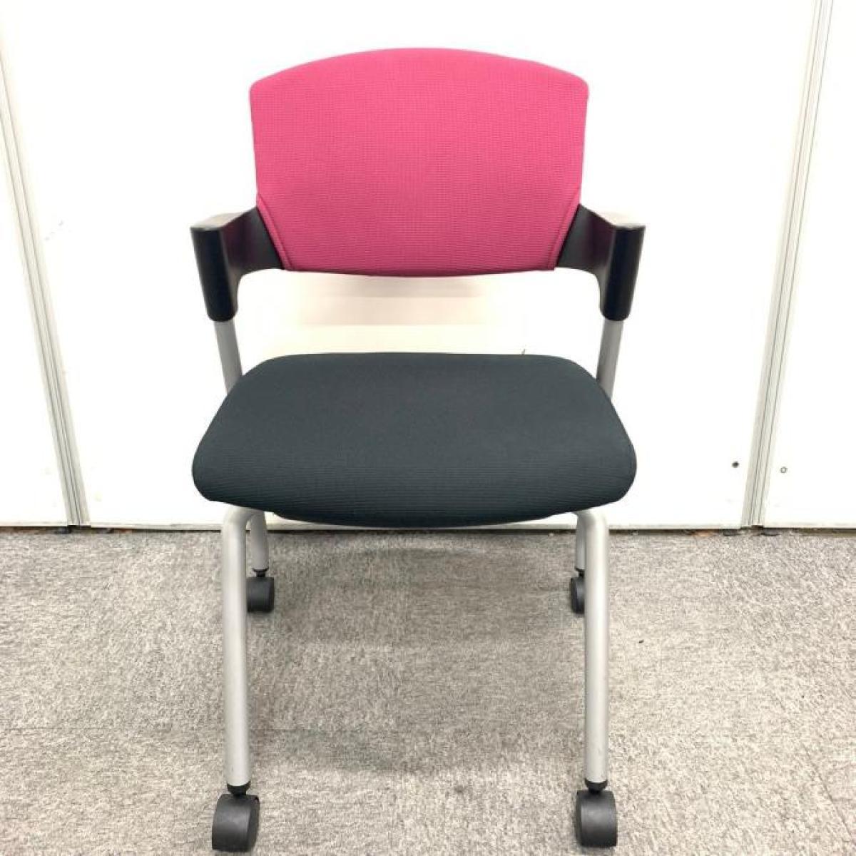 【シンプルスマートなスタッキングチェア!分厚いクッションで長時間でも快適な座り心地!】■コクヨ(KOKUYO)製 プロッティ(Protty) スタッキングチェア 肘付ミーティングチェア ■固定肘 ■キャスター付 ■ブラック ■背面パープルクッション〈岐阜・愛知・三重・静岡・福井〉- 岐阜店