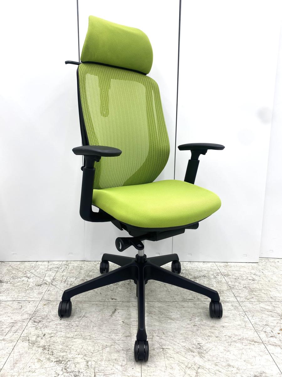 【人気過ぎて再入荷!!】オカムラ(okamura)シルフィチェア メッシュ仕様 ■色:ライムグリーン エクストラハイバック 可動肘付き