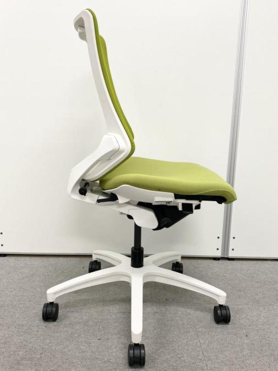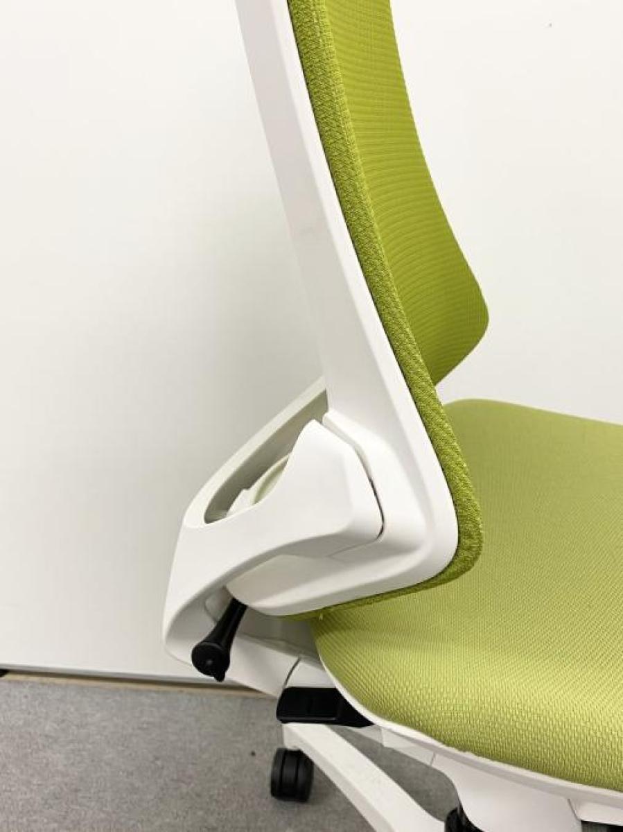 【在庫入れ替えSALE】【腰部の広範囲をソフトにホールドして圧力を分散!スタイリッシュなデザインのメッシュチェア!】■イトーキ製 エフチェア ハイバック ■メッシュバック ■グリーン× ホワイトシェル- 岐阜店