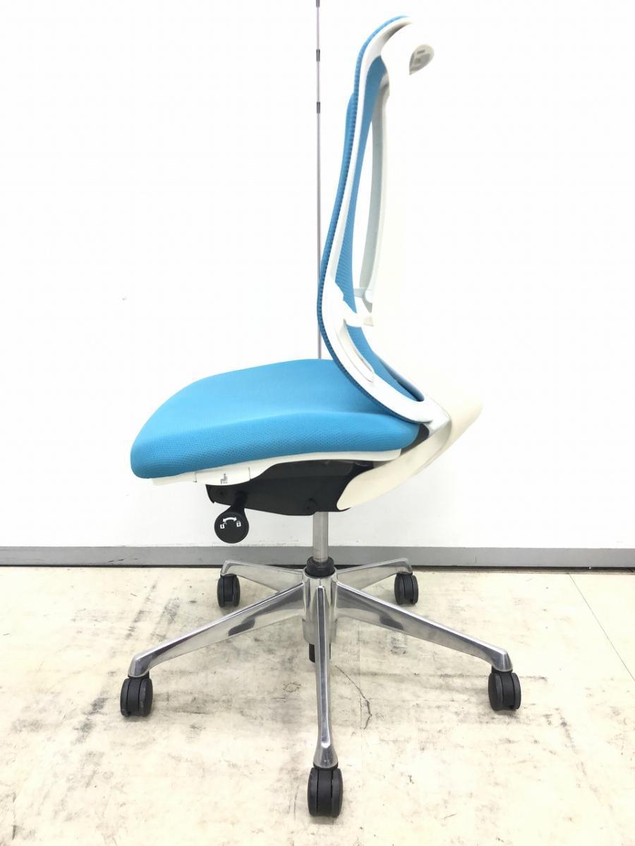 三次元曲面が身体にフィット!前傾チルト機能付き大人気メッシュチェア! ■オカムラ/シルフィーチェア(Sylphy)/ブルーグリーン×ホワイトシェル 肘付ハイバック ■背面メッシュ ■肘無し