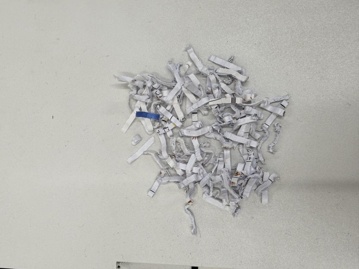 縦切り横切りを一度に行うカット方式で、細断くずはミリ単位でチップ状に細断され、収容能力を高めます。
