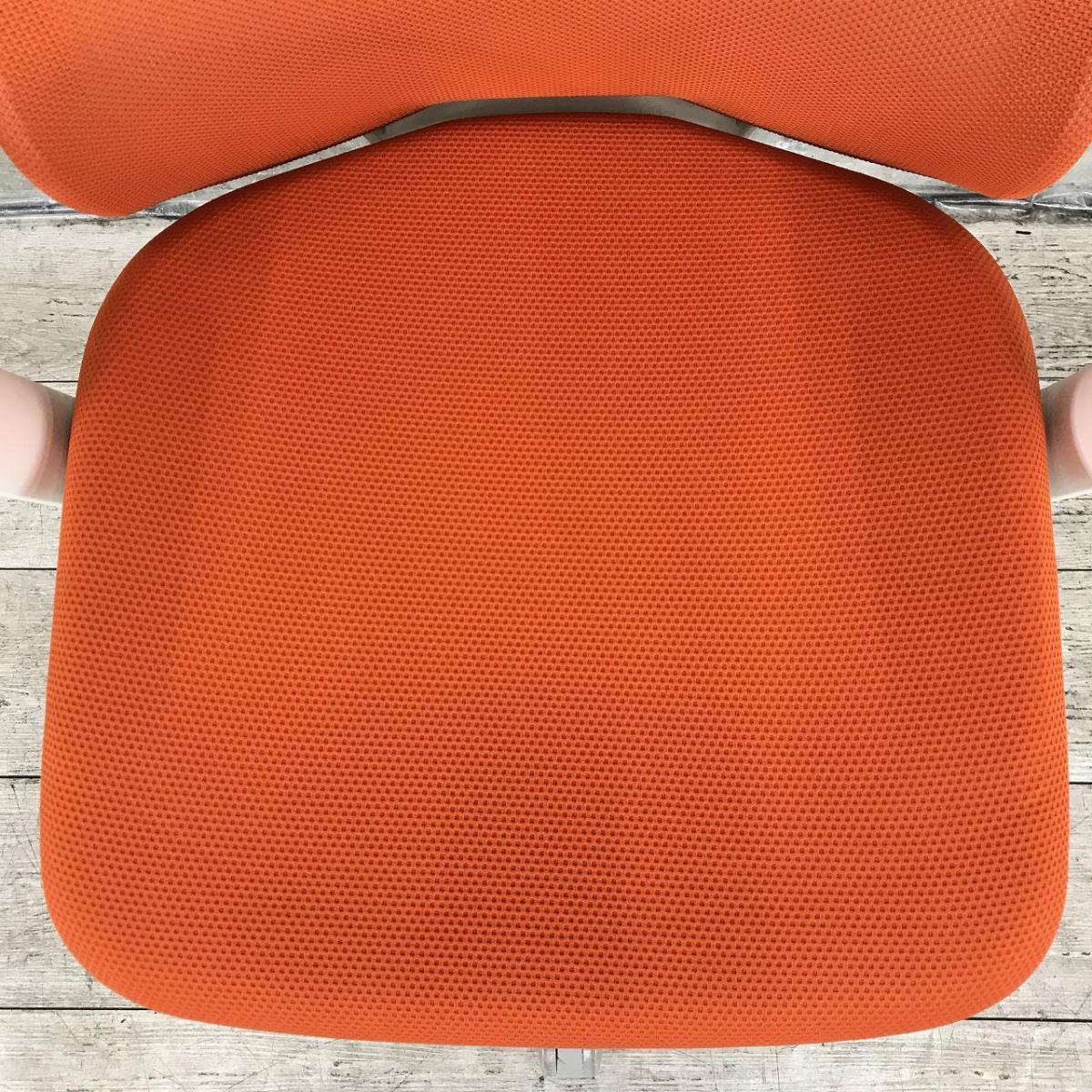 【長時間作業も快適フィット!腰まわりのホールド感が心地よい!】■オカムラ フルーエントチェア 可動肘付 オレンジ ホワイトシェル ■あのシルフィの座り心地を低コストで再現!【Okamura Fluent】★- 川崎店