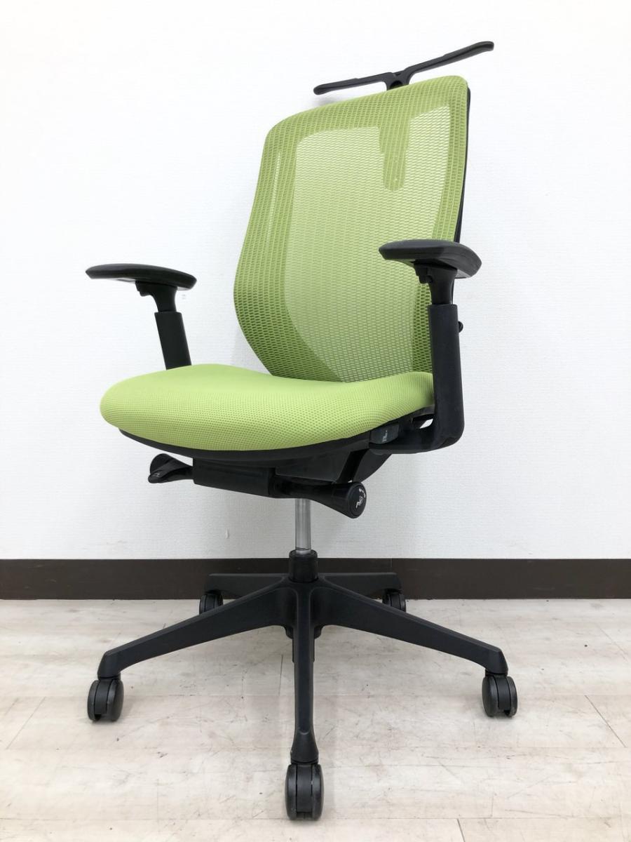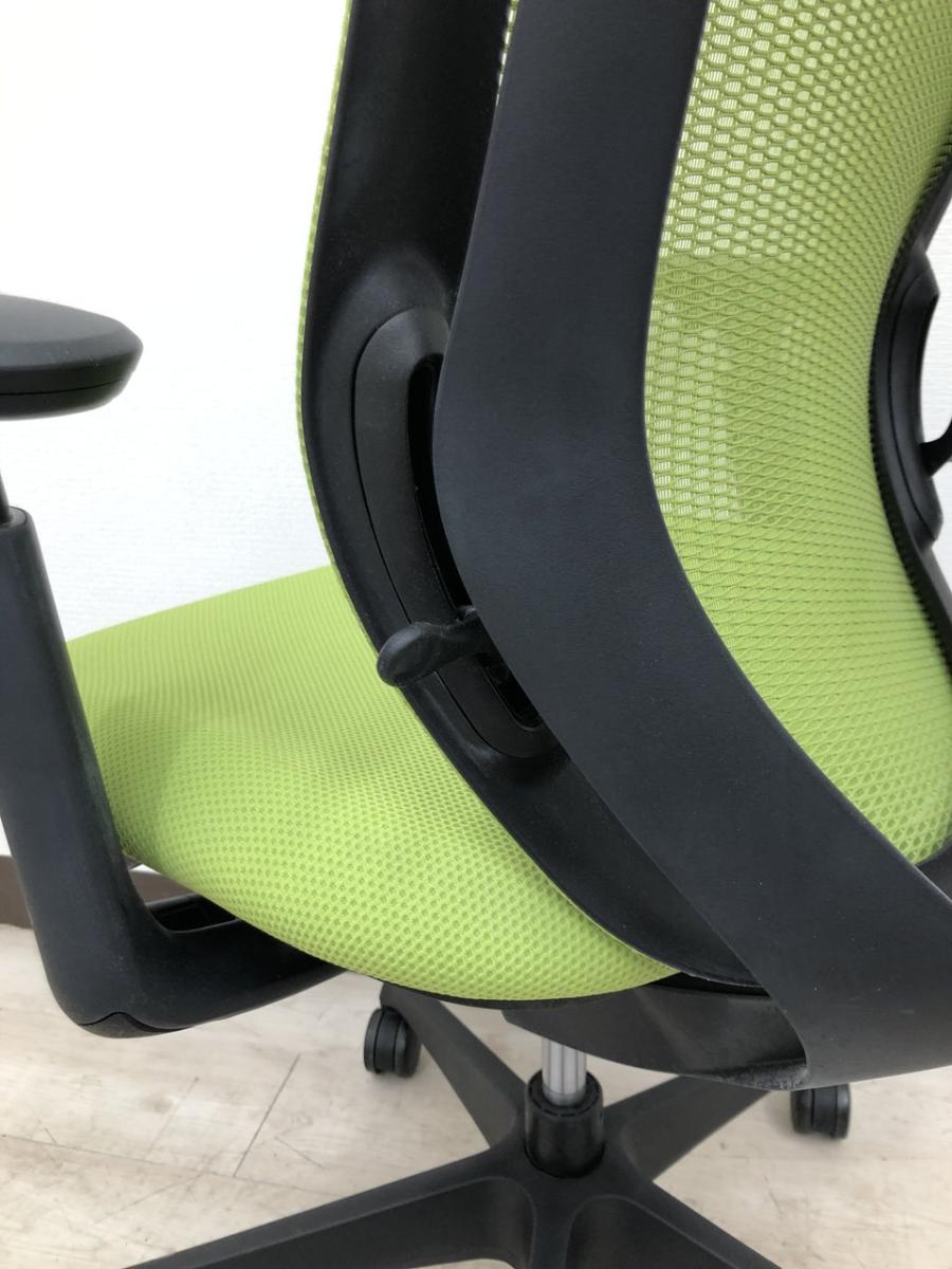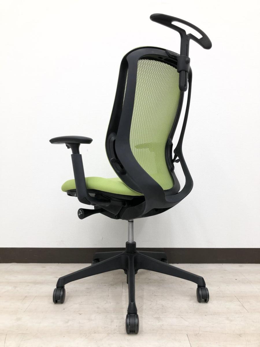 【まるで手を添えて包み込まれるような優しい座り心地!】■オカムラ シルフィーチェア 可動肘付 ライムグリーン ハンガー付 ■新感覚のオフィスシーティング!【Okamrua Sylphy】A01034182- 川崎店