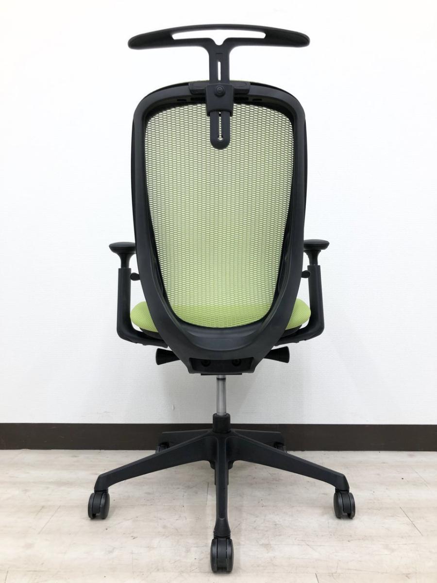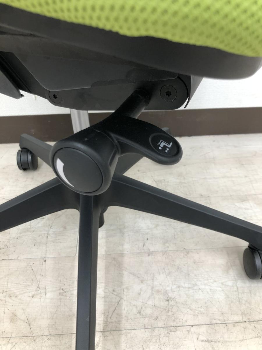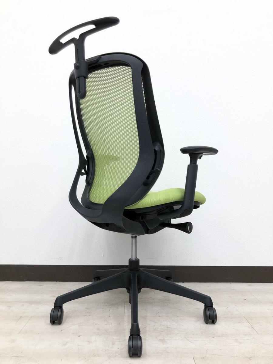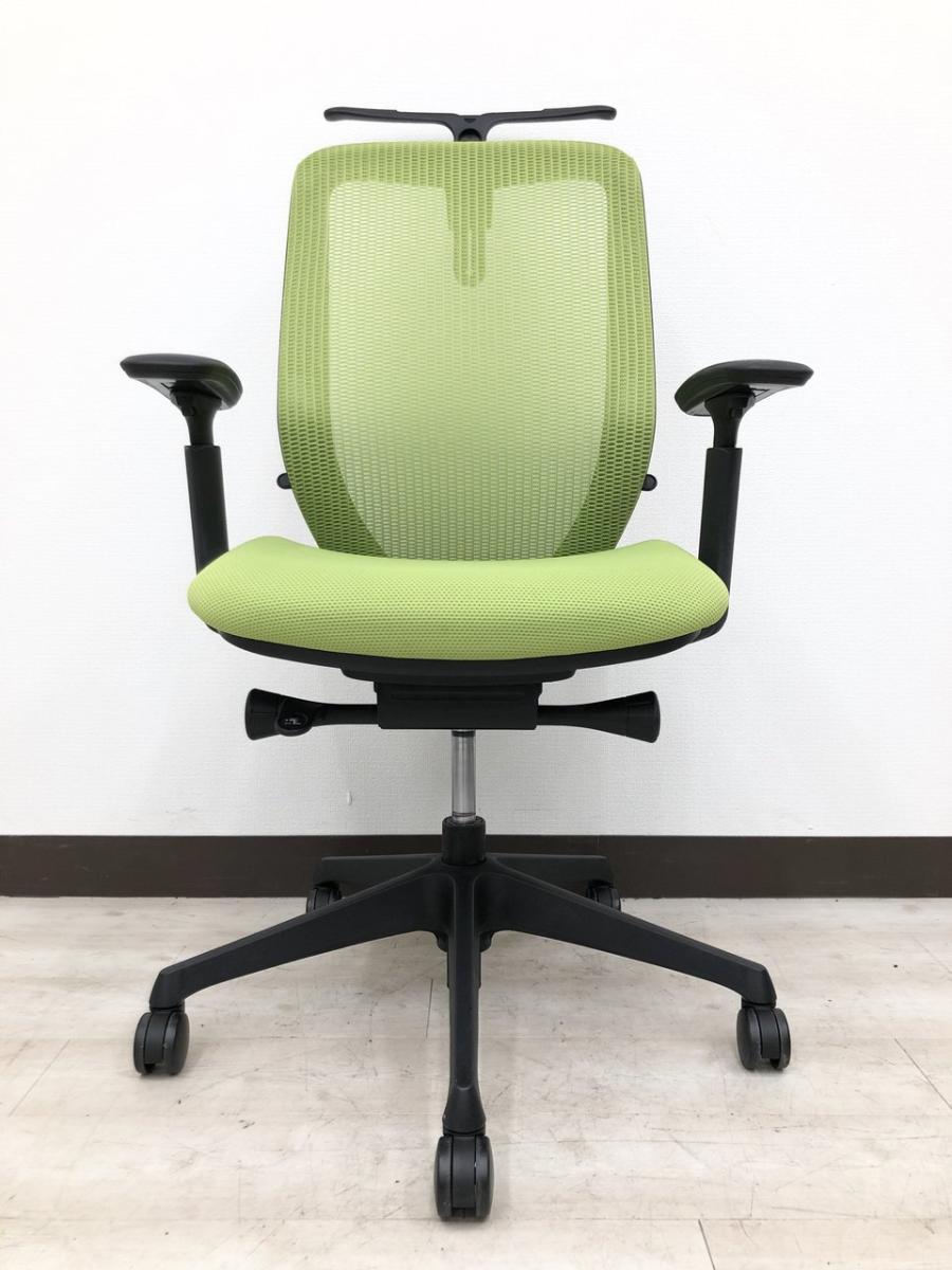 【まるで手を添えて包み込まれるような優しい座り心地!】■オカムラ シルフィーチェア 可動肘付 ライムグリーン ハンガー付 ■新感覚のオフィスシーティング!【Okamrua Sylphy】A01034182- 川崎店
