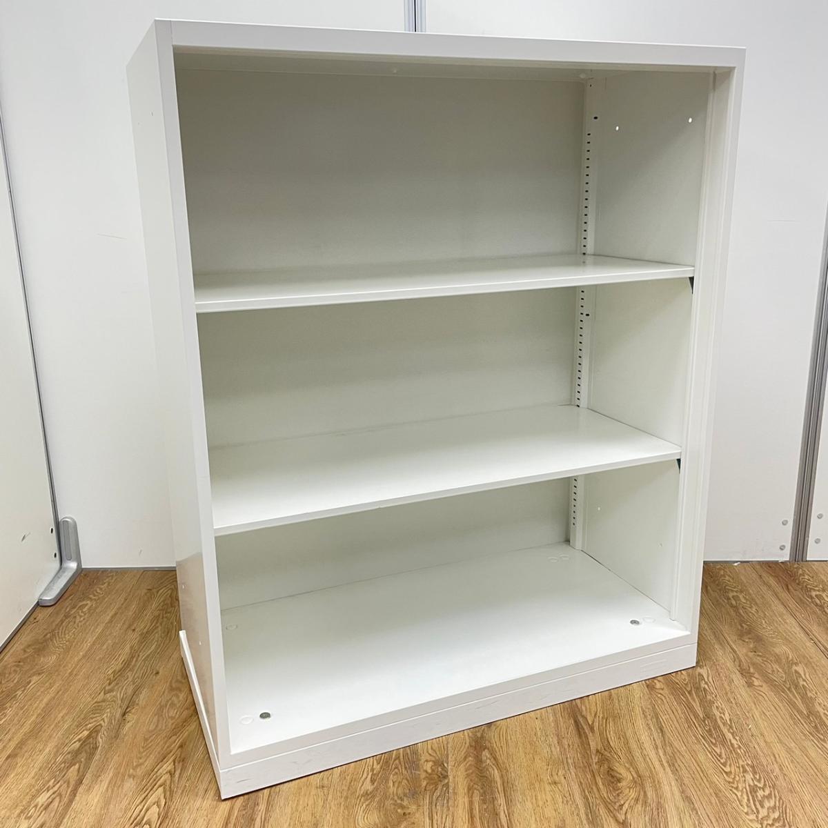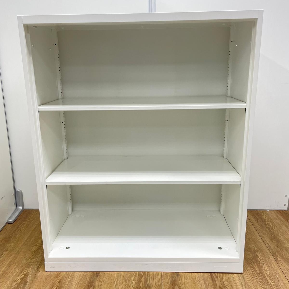 オープンキャビネットが入荷!とりあえず収納したい、書類の出し入れの多い、常に見える形で収納したい、そんなお客様におすすめ! ■オカムラ/レクトライン/ホワイト ※元は両開き書庫のため扉を外した跡がございます。
