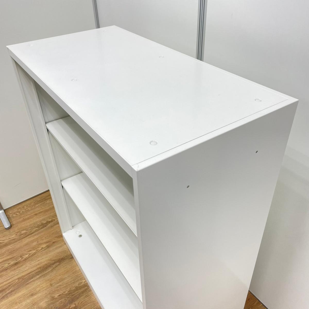 【オフィスの書類をスッキリ整理! 扉の無いタイプなので資料探しがラクラク!】■オカムラ(okamura)製 レクトライン(Rectline)シリーズ オープン書庫 ローキャビネット ■色:ホワイト ※扉外し商品のため外し跡がございます。