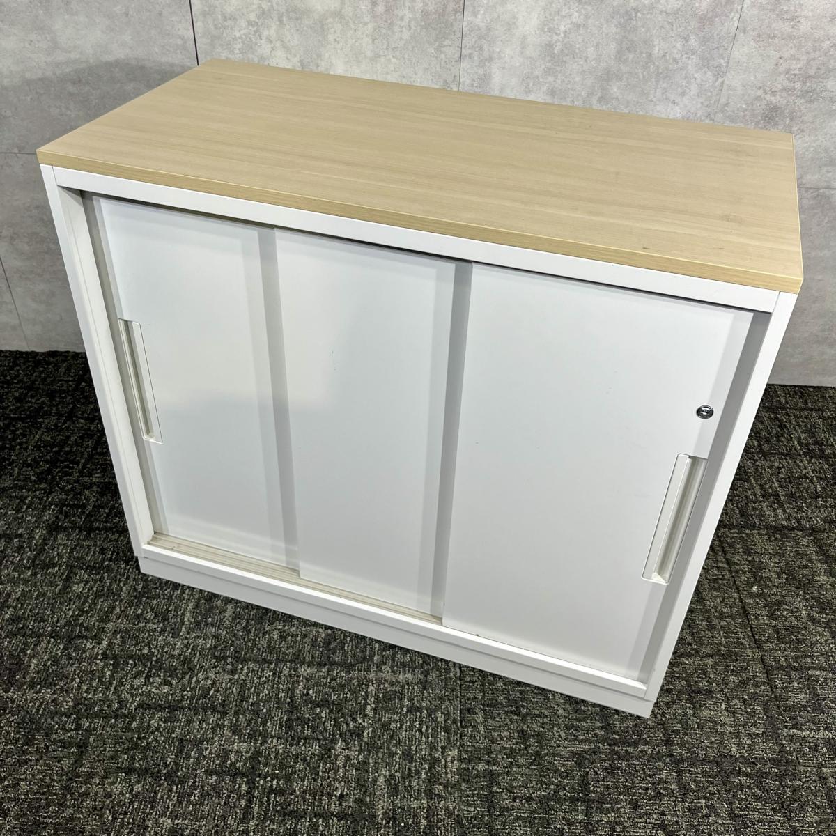 【西】~オフィスに調和するデザイン収納~【ウチダ】【HSシリーズ】【引き違い書庫】【ホワイト】【ナチュラル天板】【ローキャビネット】【下置き】【チェア】【椅子】【イス】【事務椅子】【デスク】【机】【書庫】【書棚】【棚】【ラック】【収納】【格安】【安い】【メーカー】【レイアウト変更】【模様替え】