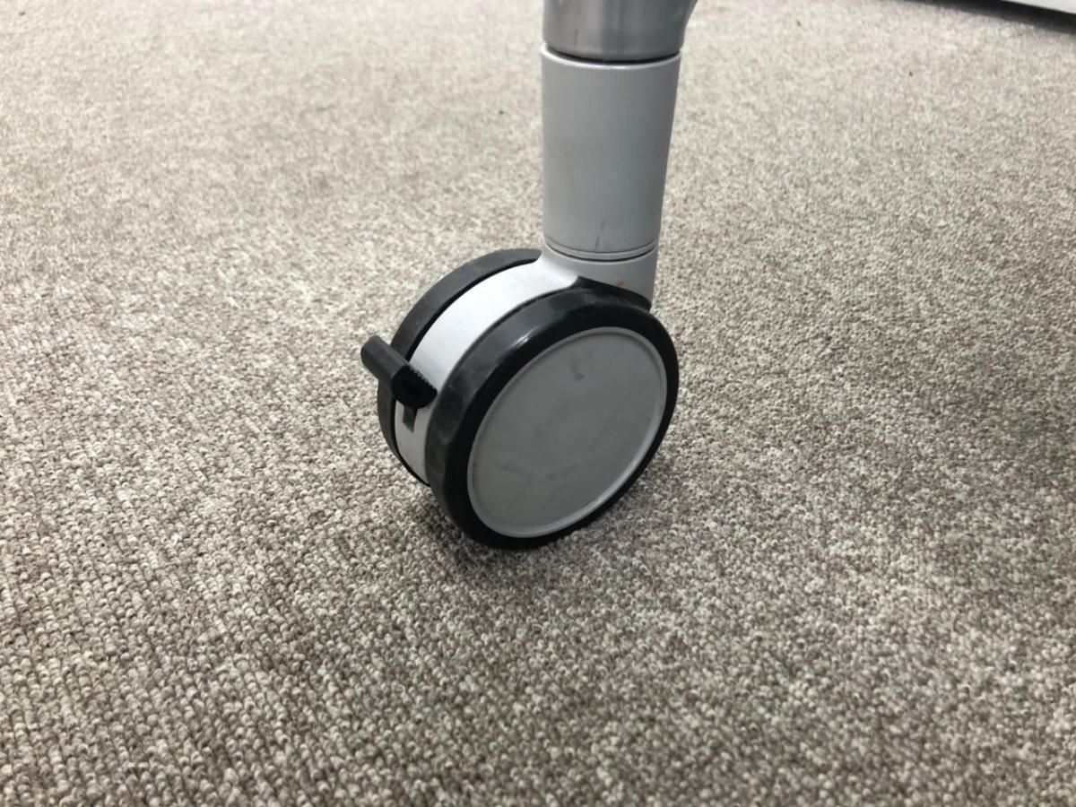 - 一部不具合あり天板歪み、アジャスター無し、キャスター使用不可ようなそのテーブルの本来の効用を果たすための機能以外の一部が使用不可な状態。(例、キャスターロッ ク機能使用不可、棚板無し等がある。)