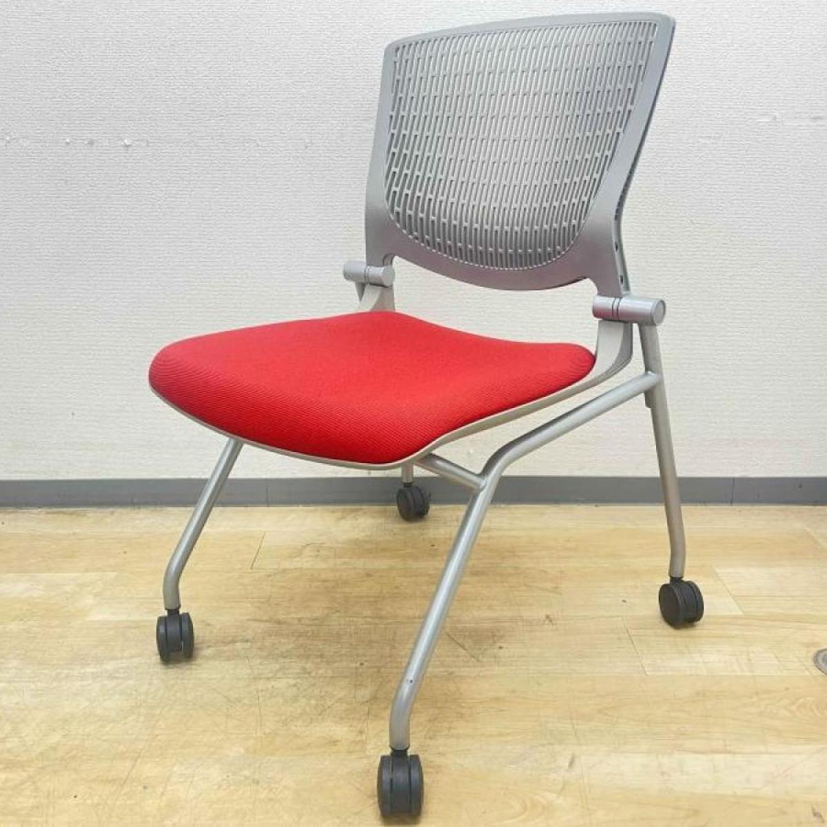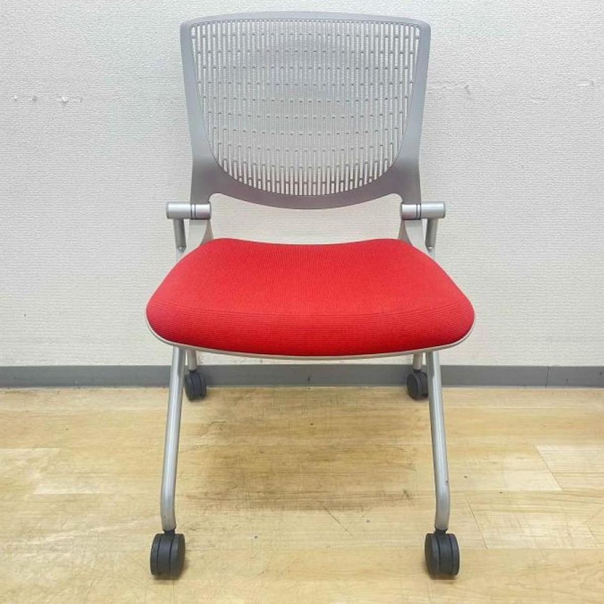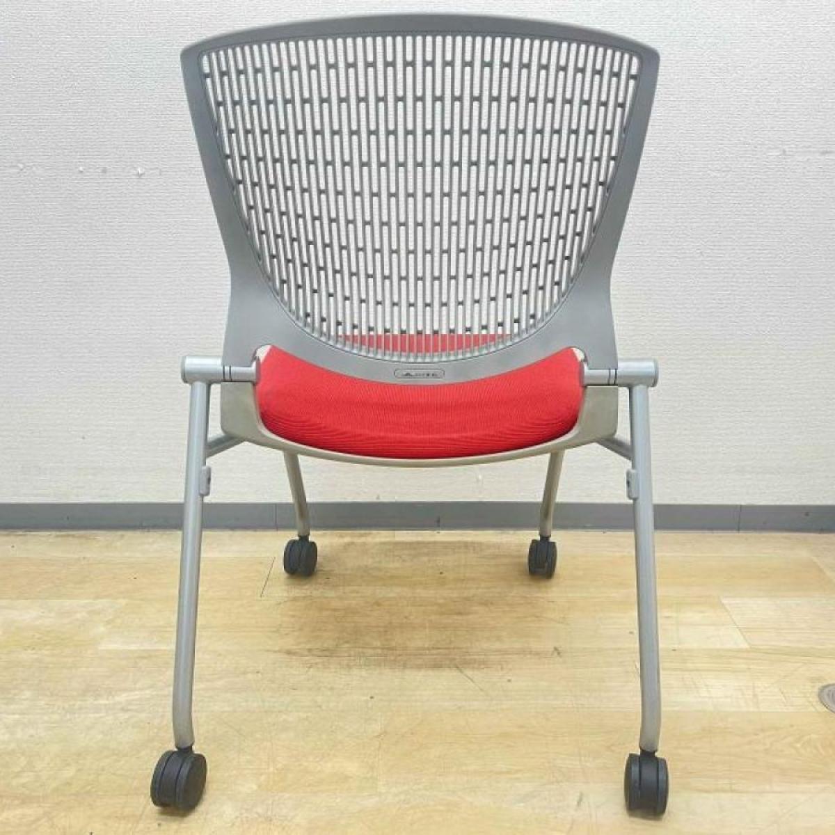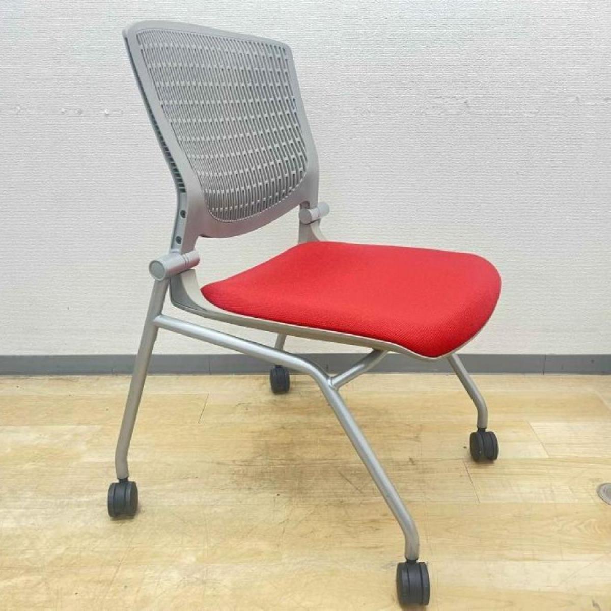 【通気性抜群のネスティングチェア!】◆オカムラ/グラータ ミーティング 打ち合わせ 折り畳み メッシュ レッド 福岡 博多 天神 九州最大級《オフィスバスターズ福岡博多店は、福岡を拠点として、日本全国へ中古オフィス用品・オフィス家具を提供しております》- 福岡博多店