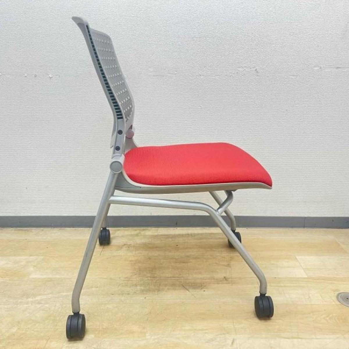 【在庫入替セール】【8脚限定】【しなやかにワーカーを受け止める洗練されたデザイン!使わない時は平行に重ねて収納可能!】■オカムラ(okamura)製 グラータ (Grata) 肘無し ミーティングチェア ネスティングチェア ■背パッド付き ■キャスター付 ■レッド【K10】