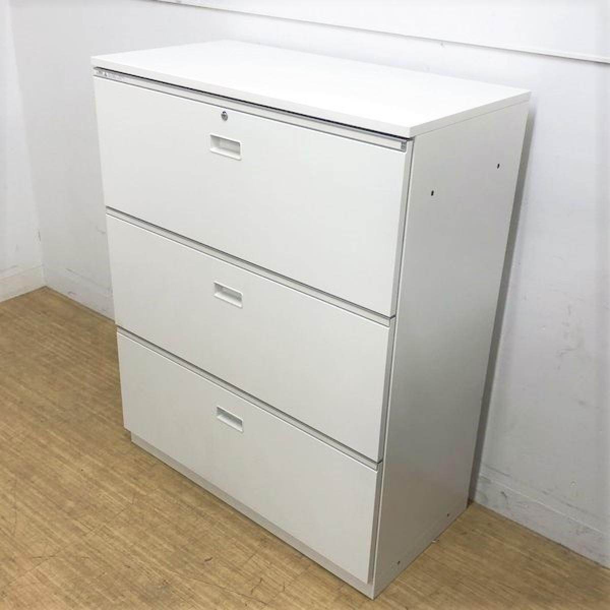 【A4ファイルも沢山収納可能!ホワイトカラーの人気シリーズ3段ラテラル書庫!】/オススメ(おすすめ) /人気商品【弊社使用欄:A01013834】3段ラテラル書庫/ローキャビネット/天板付き/ホワイト/シリンダー錠/ITOKI/THIN LINE■イトーキ/シンライン※取っ手部分日焼あり