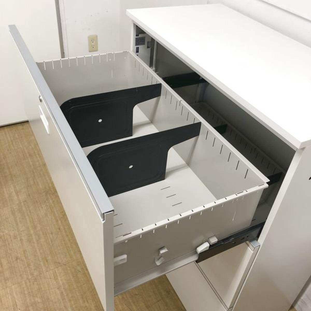 【珍しい2段ラテラルタイプ!】耐久性・機能性を兼ね備えたキャビネット!スペースにジャストフィットする引き出し型収納 ■イトーキ/シンライン/ホワイト シリンダー錠