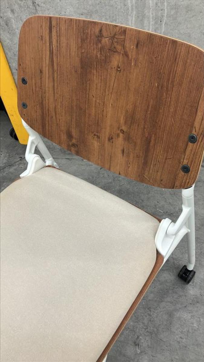 【美しい木目デザインで居心地の良い空間へ】■オカムラ(okamura)ライブス ネスティングチェア ■木目ナチュラル×グレー座面パッド 【キャスター付きで移動がスムーズ】【関東倉庫在庫品】【弊社使用欄:ECB】- なんば日本橋店