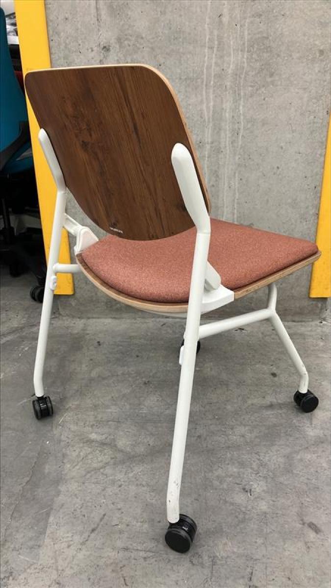 【美しい木目デザインで居心地の良い空間へ】■オカムラ(okamura)ライブス ネスティングチェア ■木目ナチュラル×ブラウン座面パッド 【キャスター付きで移動がスムーズ】【関東倉庫在庫品】【弊社使用欄:ECB】- 茨城南店