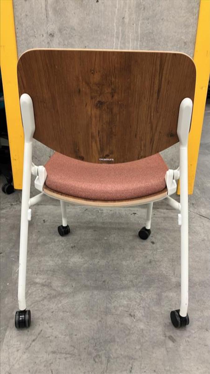 【美しい木目デザインで居心地の良い空間へ】■オカムラ(okamura)ライブス ネスティングチェア ■木目ナチュラル×ブラウン座面パッド 【キャスター付きで移動がスムーズ】【関東倉庫在庫品】【弊社使用欄:ECB】- 足立・葛飾店