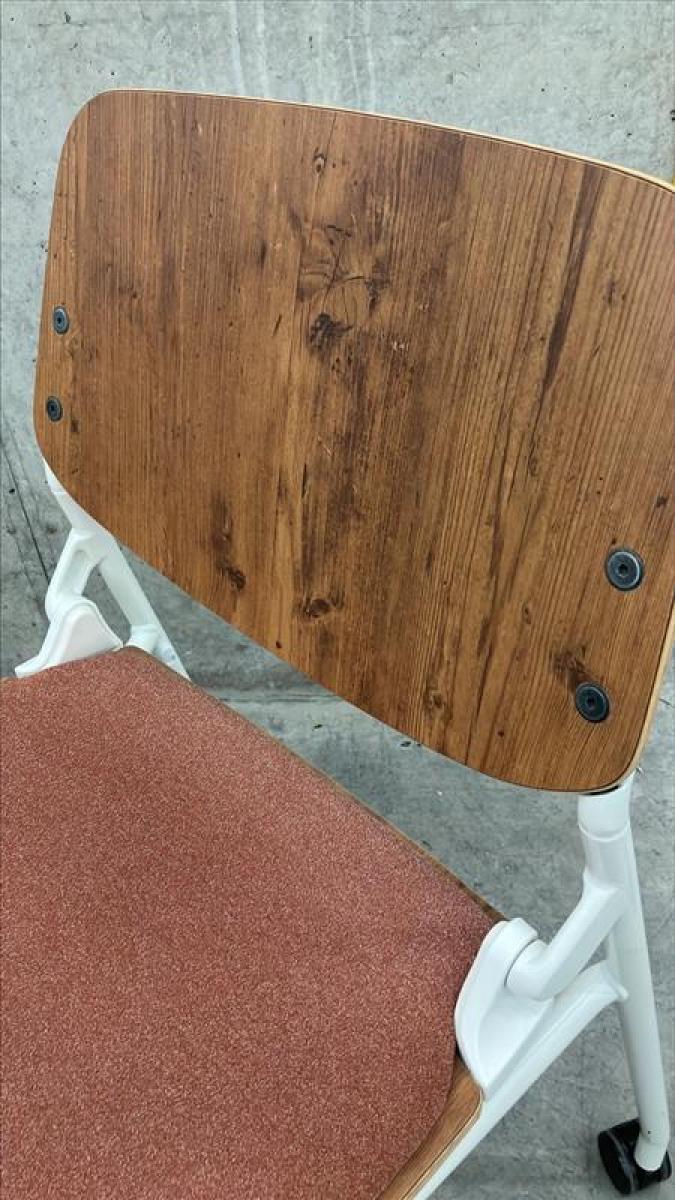 【美しい木目デザインで居心地の良い空間へ】■オカムラ(okamura)ライブス ネスティングチェア ■木目ナチュラル×ブラウン座面パッド 【キャスター付きで移動がスムーズ】【関東倉庫在庫品】【弊社使用欄:ECB】- 東大阪店