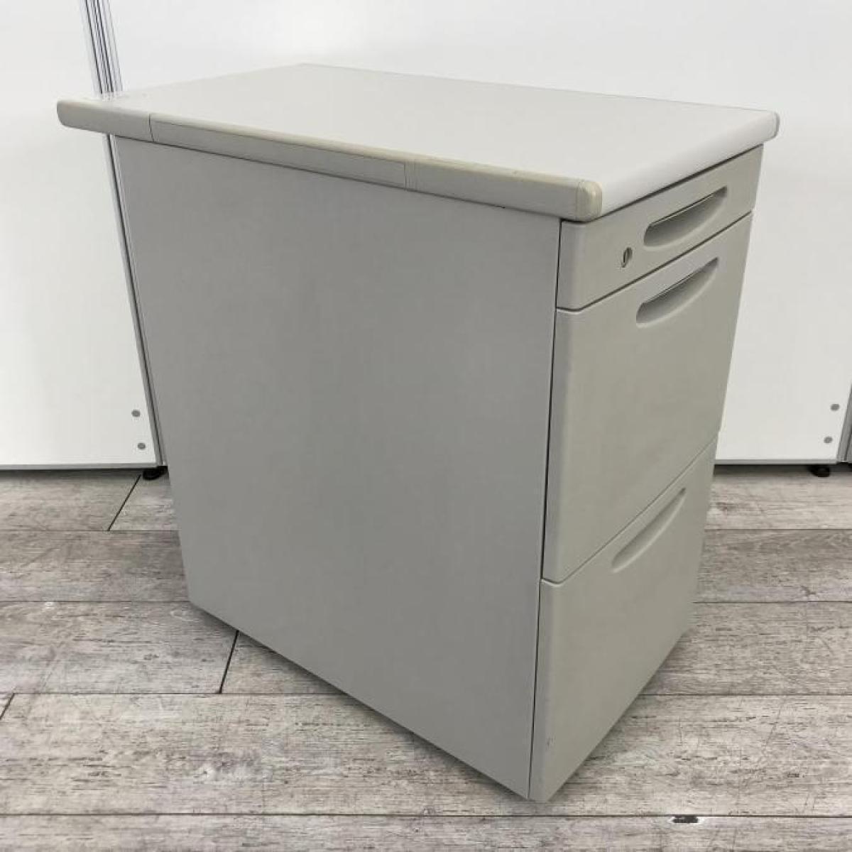 【収納と作業スペースを同時に確保できる3段脇机!】■オカムラ(okamura) SD-Vシリーズ 脇机3段 W400×D700×H700㎜ ■色:ニューグレー ■シリンダー錠- つくば店
