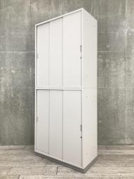 【4セット限定】【3枚引き違い扉なので開閉スペースがいりません!省スペース化に貢献!】■イトーキ(ITOKI)製 シンライン (THIN LINE)シリーズ 上下引き違い書庫セット 3枚扉 ハイキャビネット ■ニューグレー ■シリンダー錠