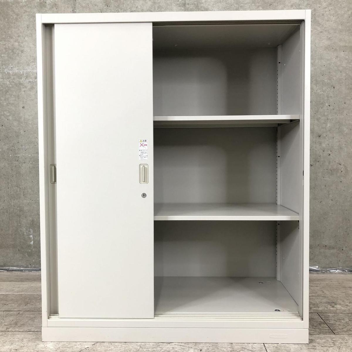 【お問い合わせの多い引違い書庫が入荷!スライド引き戸だから開閉スペースに困りません!】■オカムラ(okamura)製 レクトラインシリーズ 3枚引き戸タイプ 引違い書庫 ローキャビネット ■シリンダー錠 ■ニューグレー【2508】弊社使用欄【A01029264】- 埼玉本店