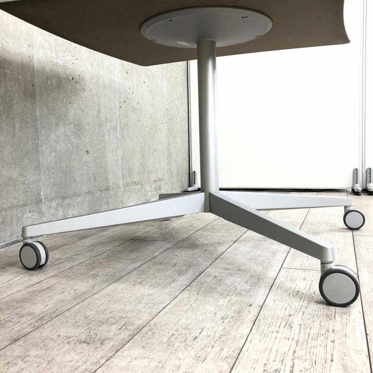 【リフレッシュスペースにもオススメ!】■オカムラ(okamura)製 アプションフリーシリーズ ミーティングテーブル \ ナチュラル木目カラー カイトタイプ 単支柱 【フレキシブルに使えるキャスター付!】
