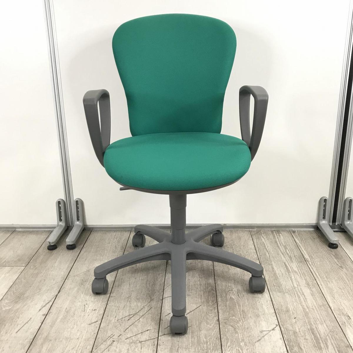 【ふっくらクッションが心地良い!コスパ抜群のコンパクトチェア!】■コクヨ(KOKUYO)製 レグノ2(LEGNO2)チェア 肘付き ローバック ■サークル肘 ■ミディアムミントグリーン × グレーシェル【2509】弊社使用欄【A01034639】- 埼玉本店