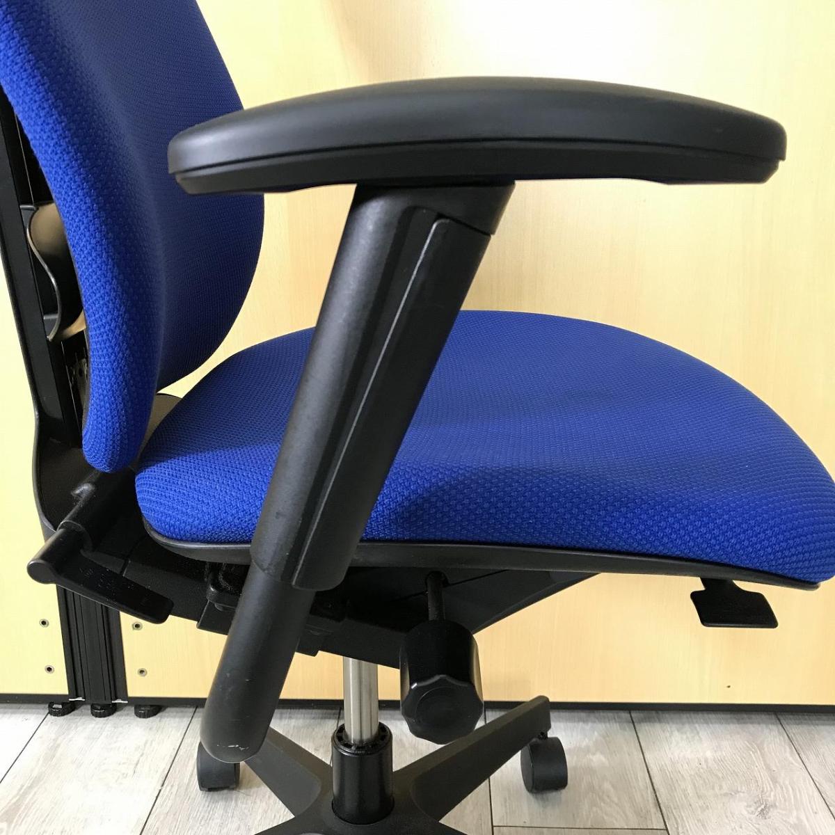 ★【商品入替のため、残り7脚限り】イトーキ製 プラオ ストロングブルー 肘付き ハイバック アジャスタブル※可動肘(ソフトパッド) ランバーサポート付 一人ひとりにマッチする座り心地! ミドルクラスの定番チェア! 肘付きハイバックチェア!!
