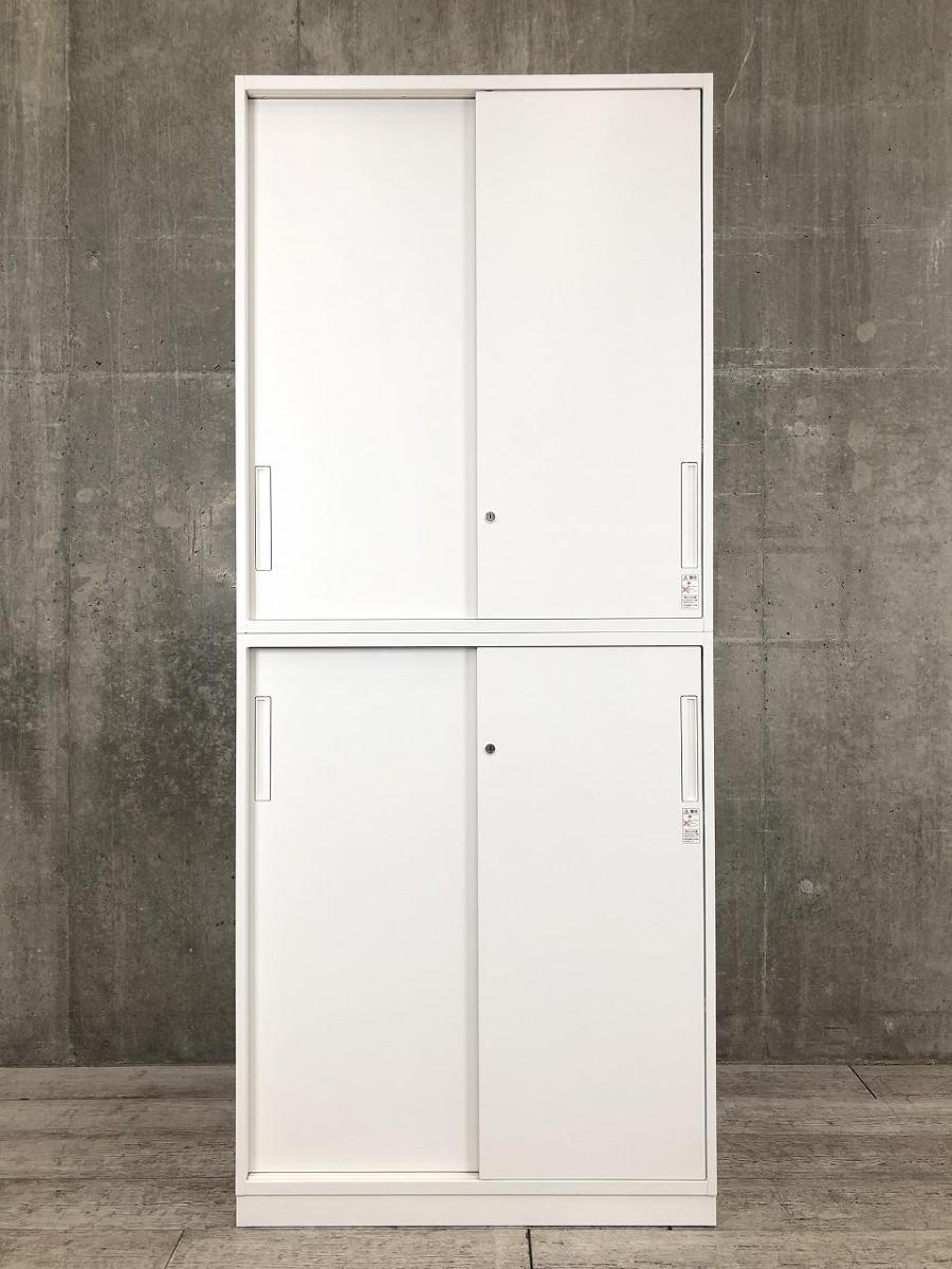 【大手町・神田サテライトCP】【手狭オフィスで大活躍!導線を確保できる上下引き違い書庫セット!】■コクヨ(KOKUYO)製 エディアシリーズ(EDIA) 上下引き違い書庫セット ハイキャビネット H2150㎜ ■2枚扉 ■シリンダー錠 ■ホワイト