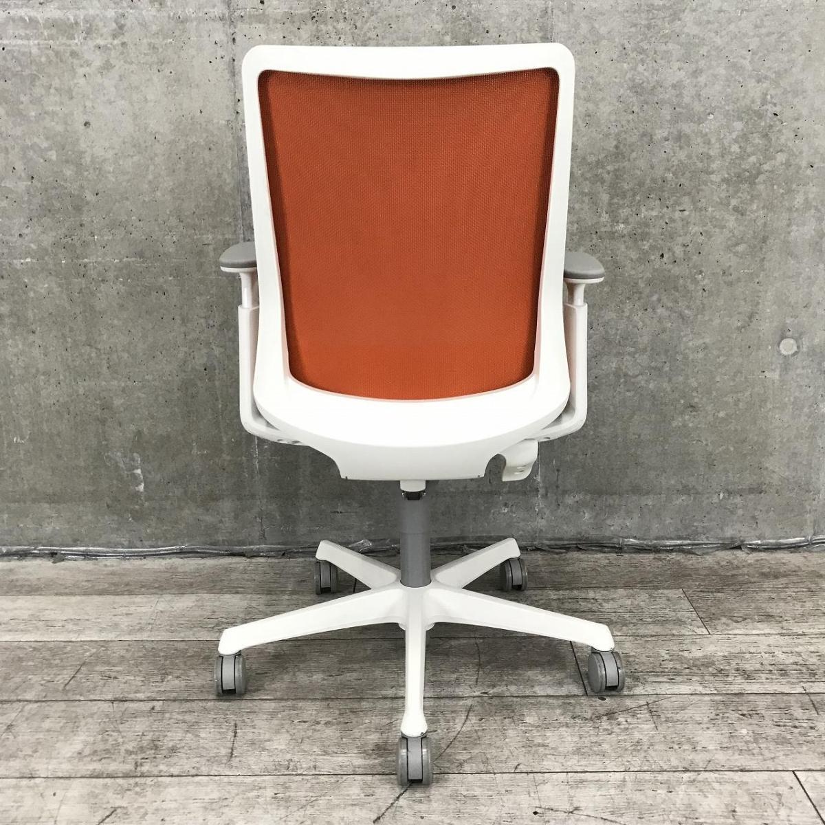【定価約8万円】【背中を立体的に包み込む!シルフィの座り心地を低コストで再現!】■オカムラ(okamura)製 フルーエントチェア(Fluent) 肘付き ローバック 背面メッシュ ■可動肘 ■オレンジレッド×ホワイトシェル- つくば店