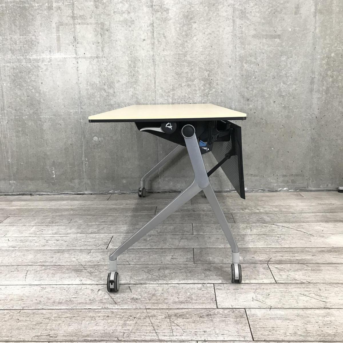 【折りたたみ収納が秀逸!スタイリッシュなデザインで高品質!】■オカムラ(okamura)製 インターアクトNT(INTER ACTNT) サイドスタックテーブル W1500×D600×H720mm ■キャスター付 ■木目調ナチュラル天板- 品川・三田店