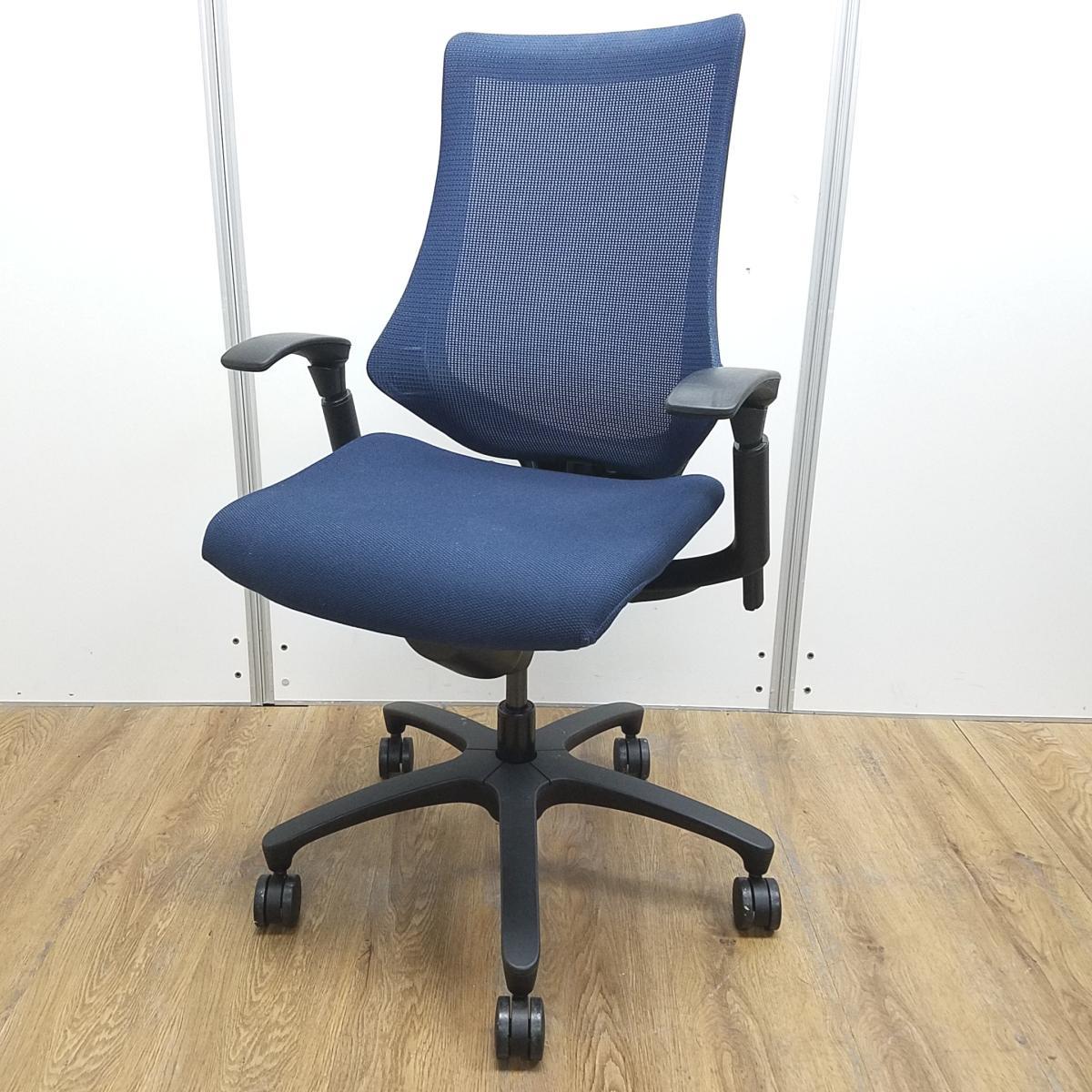 【最先端のデザインに快適な座り心地!】■イトーキ製 エフチェア 可動肘付 ネイビーブルー ■三次元フォルムが腰にフィット!【在庫入替セール品(本在庫限定価格)】