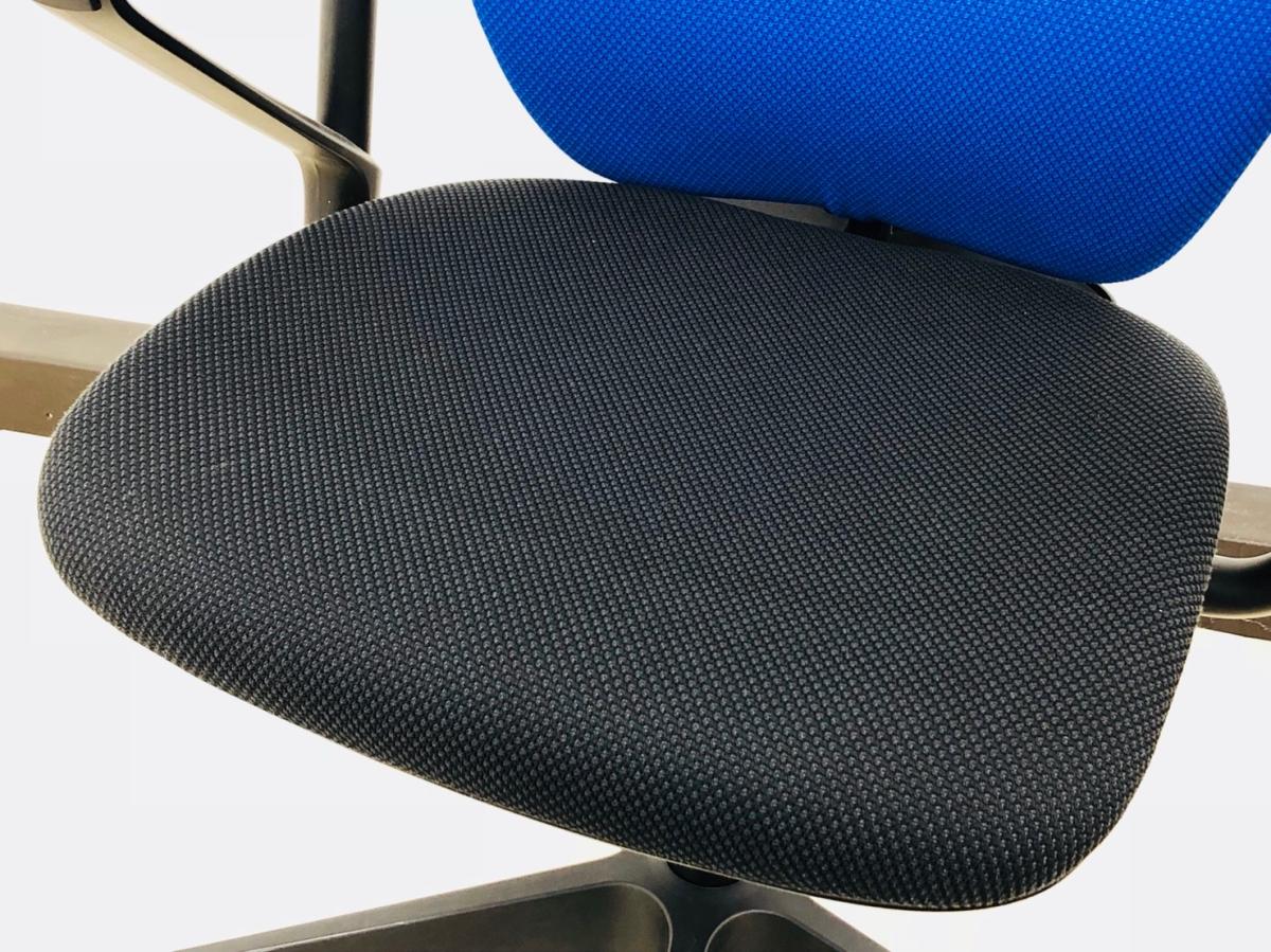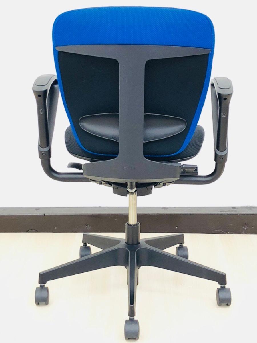 【一人ひとりにマッチする座り心地!姿勢の変化にフレキシブルに対応!】■イトーキ(ITOKI)製 プラオチェア 肘付 ローバック ■サークル肘 ■背面ストロングブルー×座面ブラック オフィスバスターズ 東大阪店【K11】
