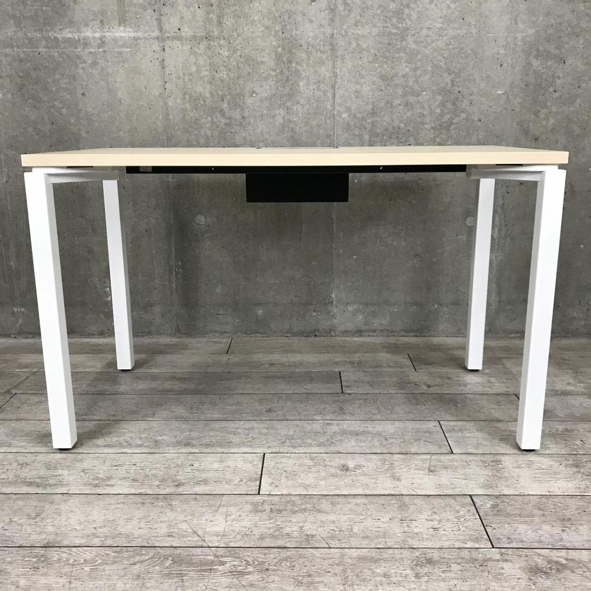 【スタイリッシュなミーティングテーブル!オフィスデスクとしてもお使いいただけます!】■コクヨ(KOKUYO) ワークフィットシリーズ ミーティング 平机 W1200×D600 ■配線口 ■天板:木目ナチュラル/脚:ホワイト- なんば日本橋店
