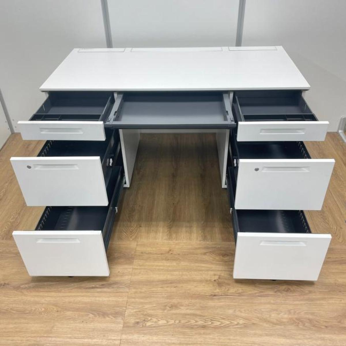 【在庫セール品・1台限定】【T11】■コクヨ(KOKUYO)製 アイエス(iS)シリーズ 両袖デスク W1400mm ■シリンダー錠 ■ホワイト【幅広いワークスペースで上長席にもオススメ! 収納スペース充実! 机上をスッキリ整理!】