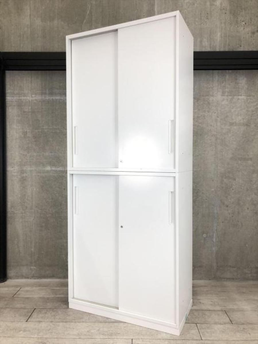 【1セット限定】【下の書庫に傷あり】【開閉時に場所を取らない引き違い戸の書庫セット!】■ウチダ製 HSシリーズ 引き違い+引き違い ハイキャビネット 2枚引き戸 ■ホワイト ■シリンダー錠 オフィスバスターズ 梅田本店【未】